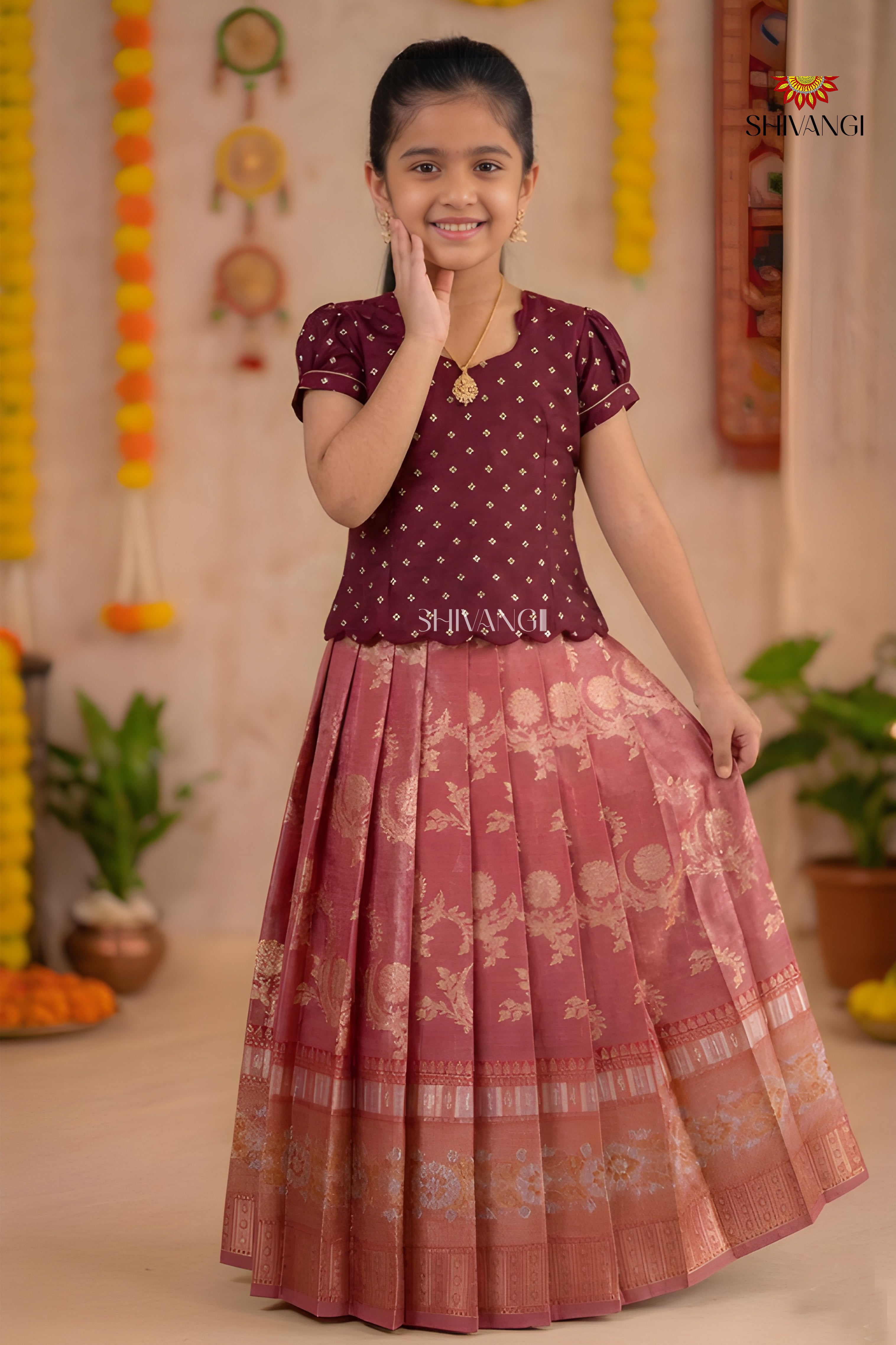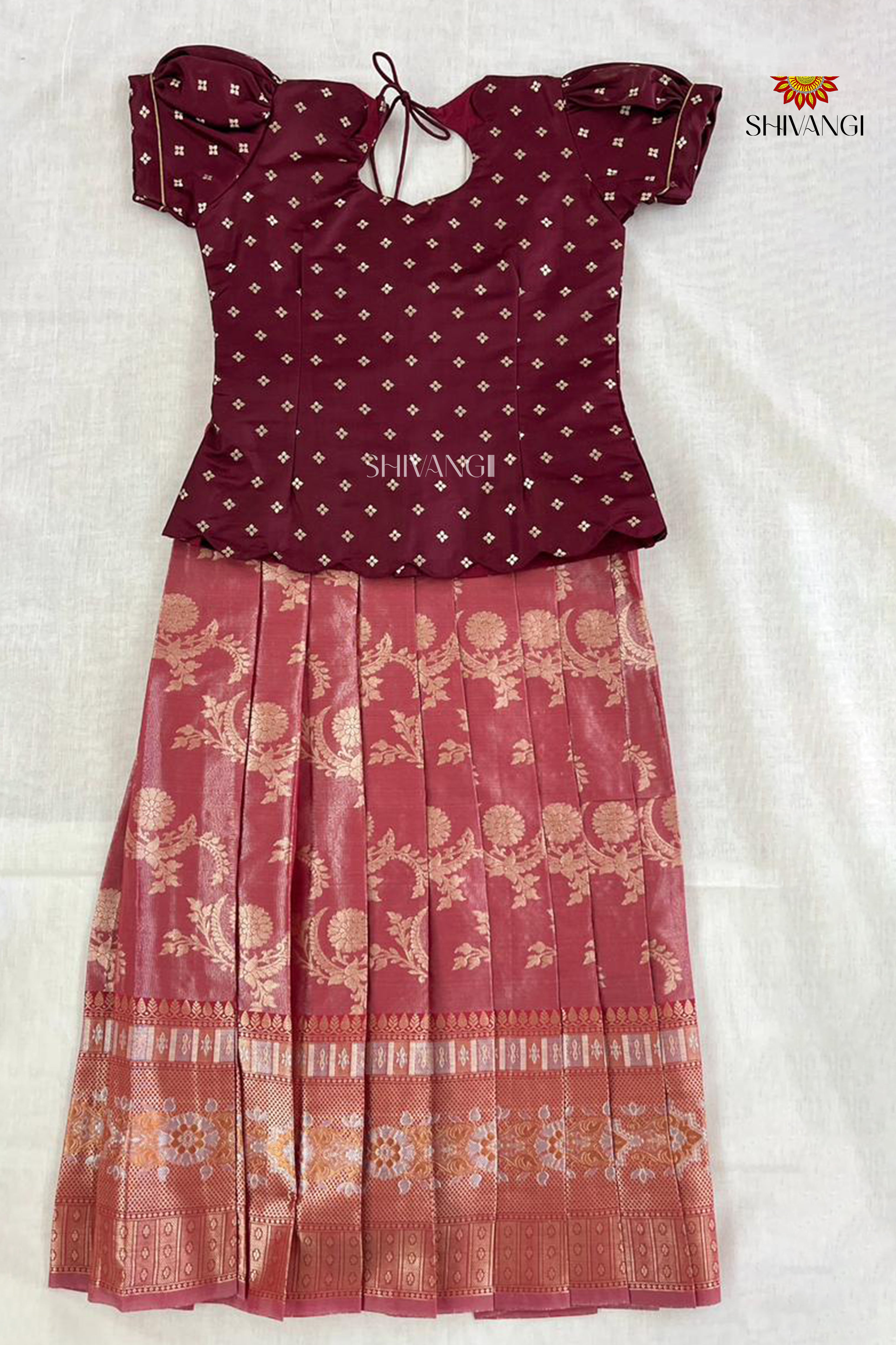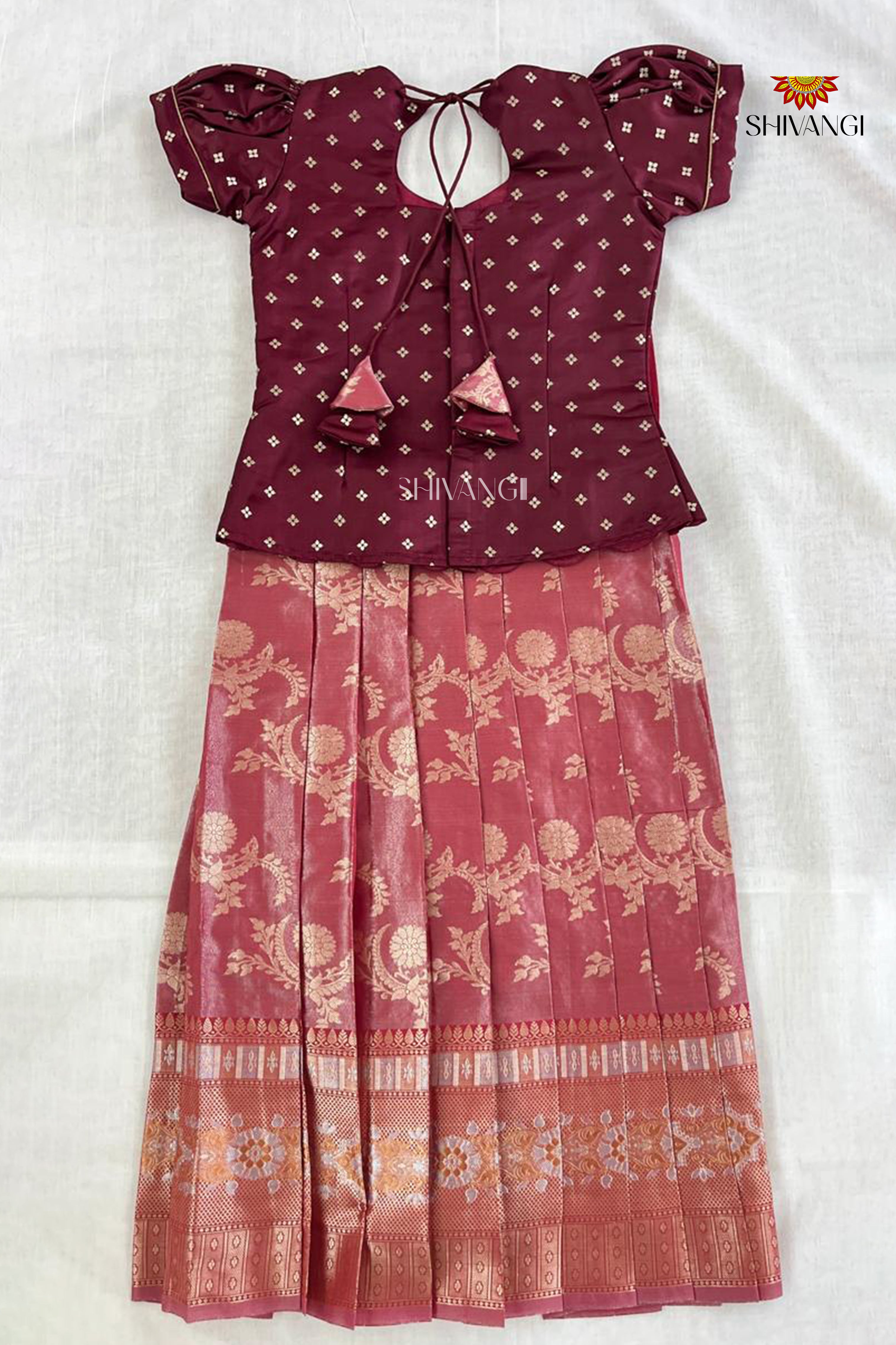 Maroon Floral Moon Traditional Pattu Pavadai Sets