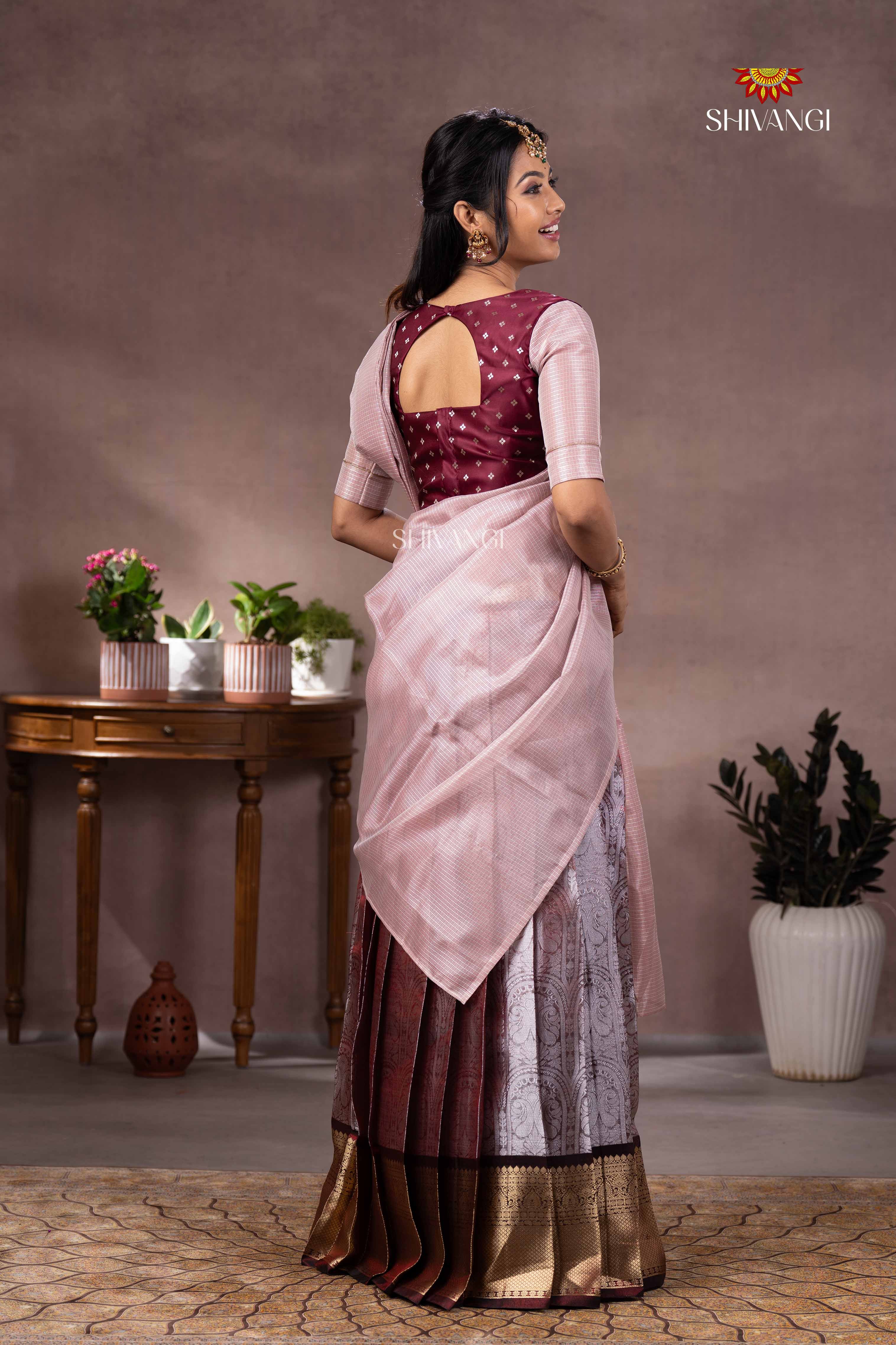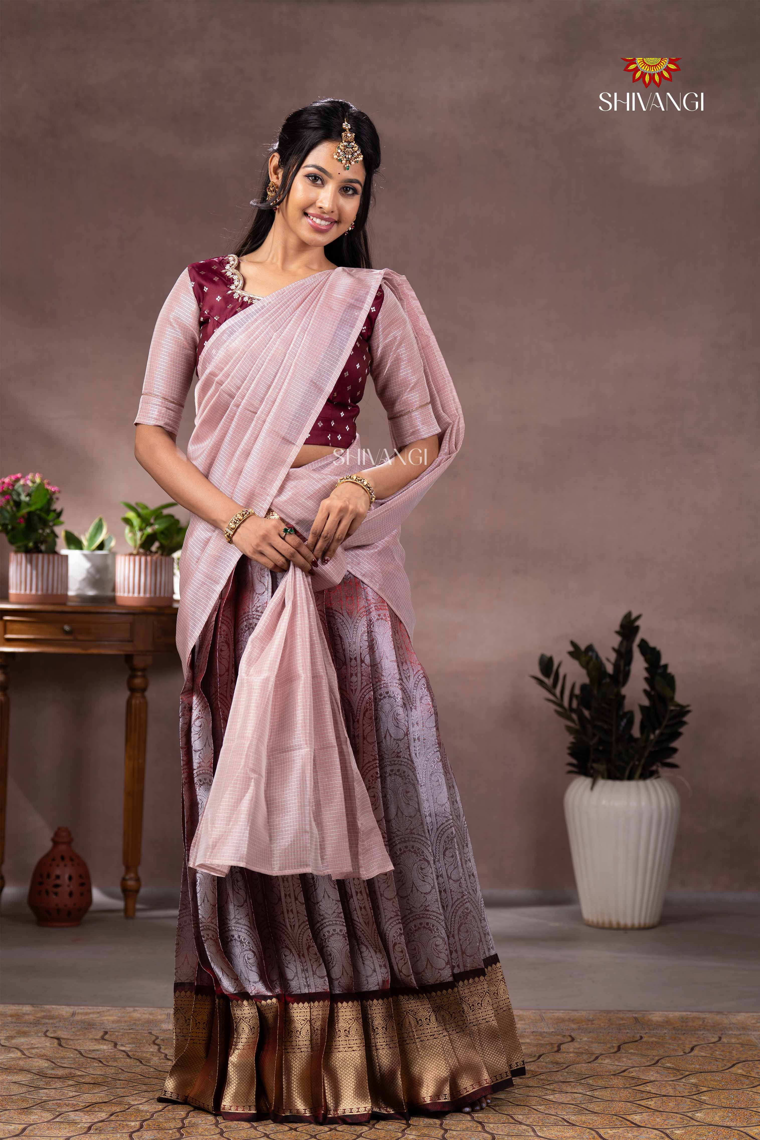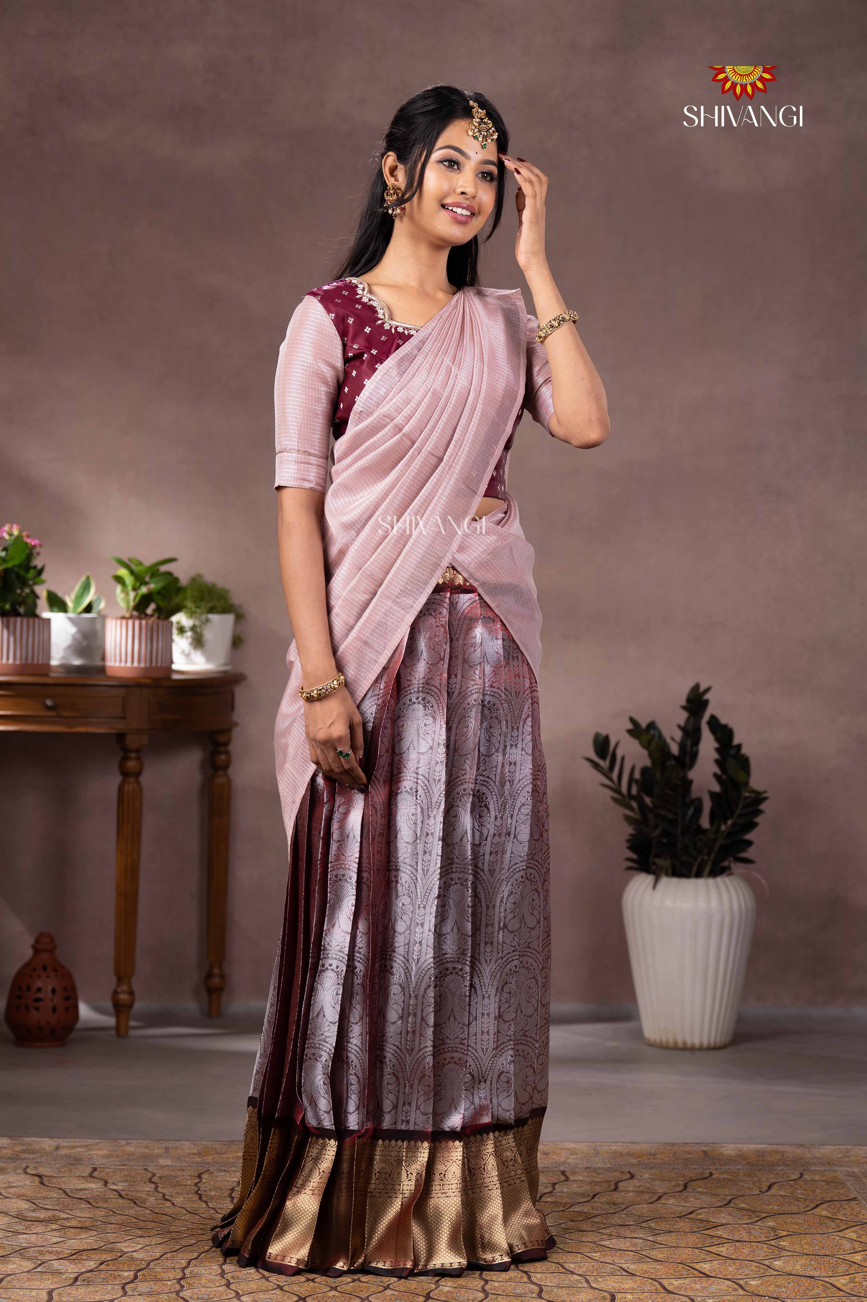 Maroon Nilavin Oli Half Saree | Lehenga For Girls