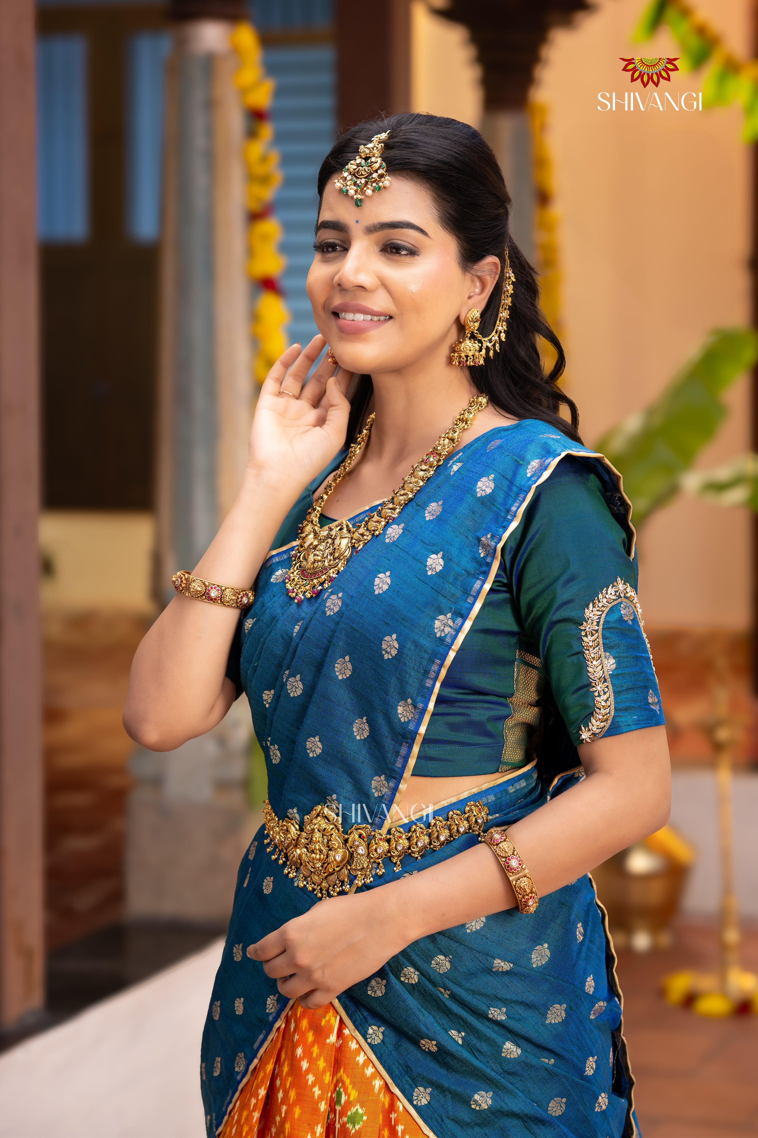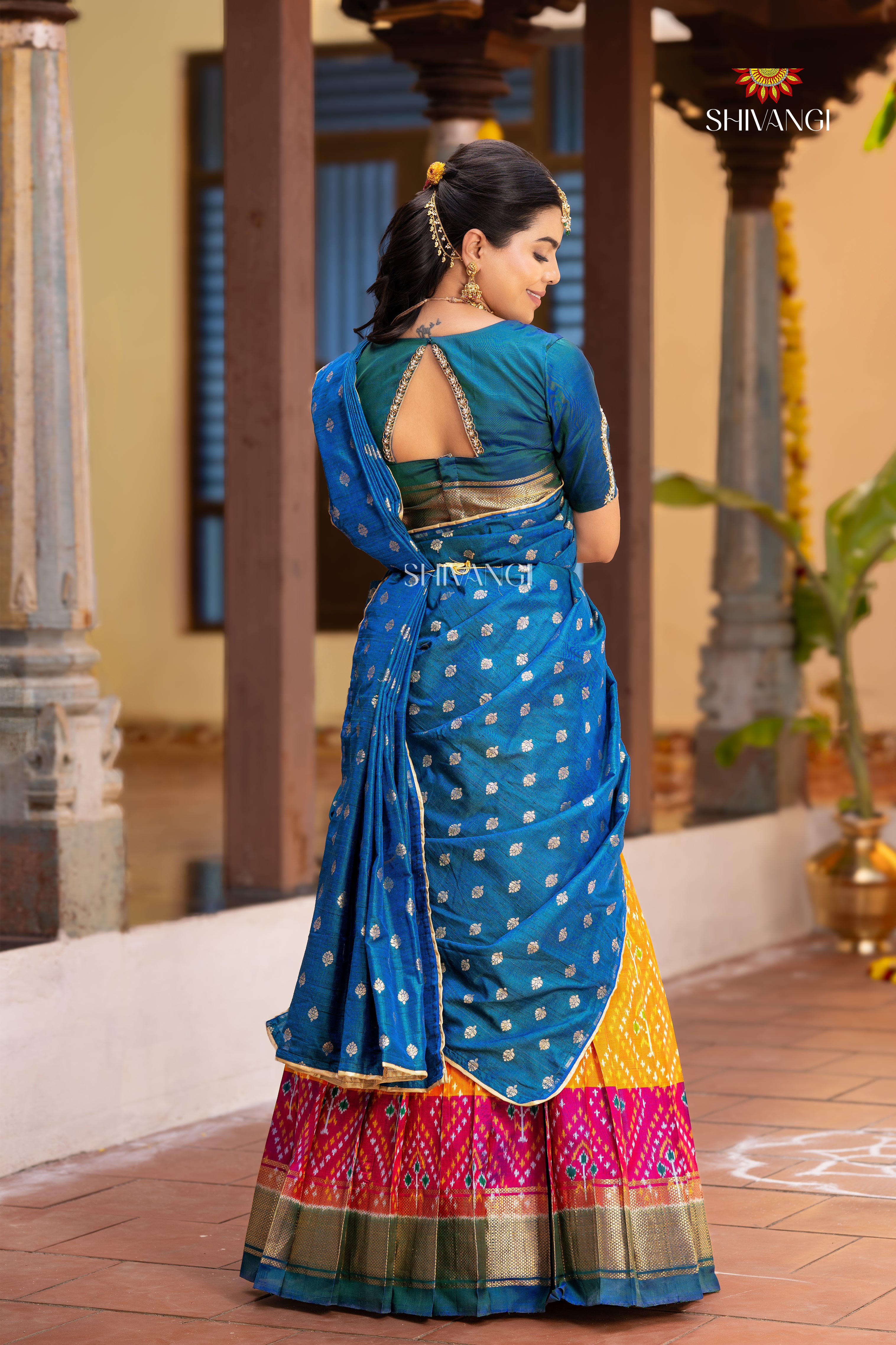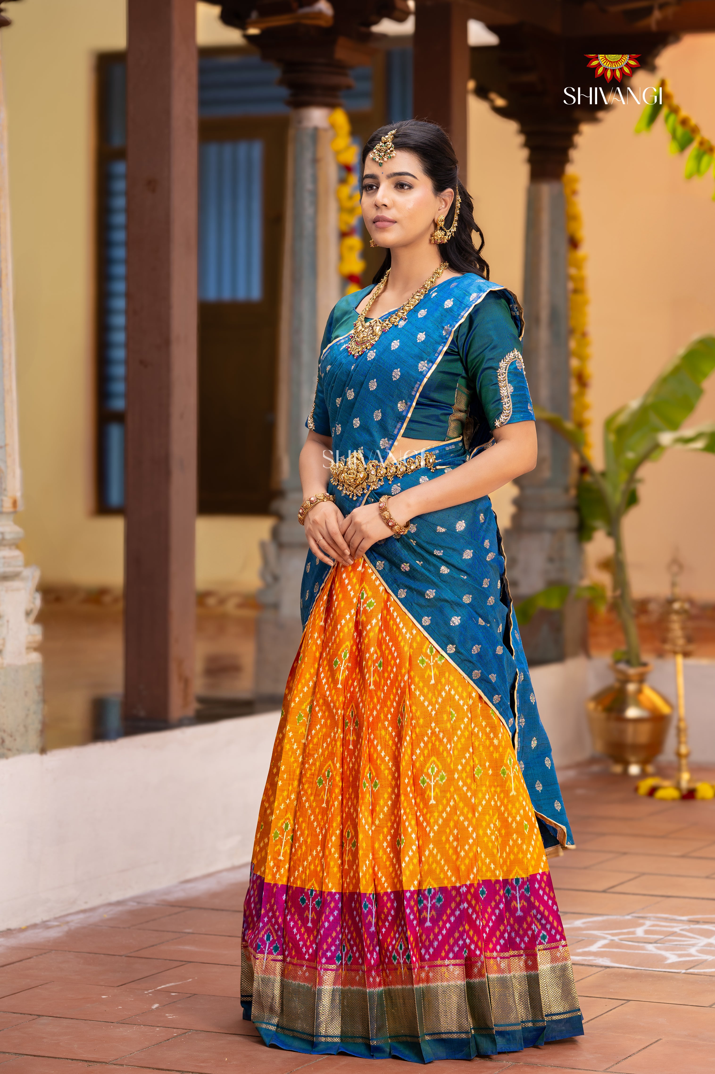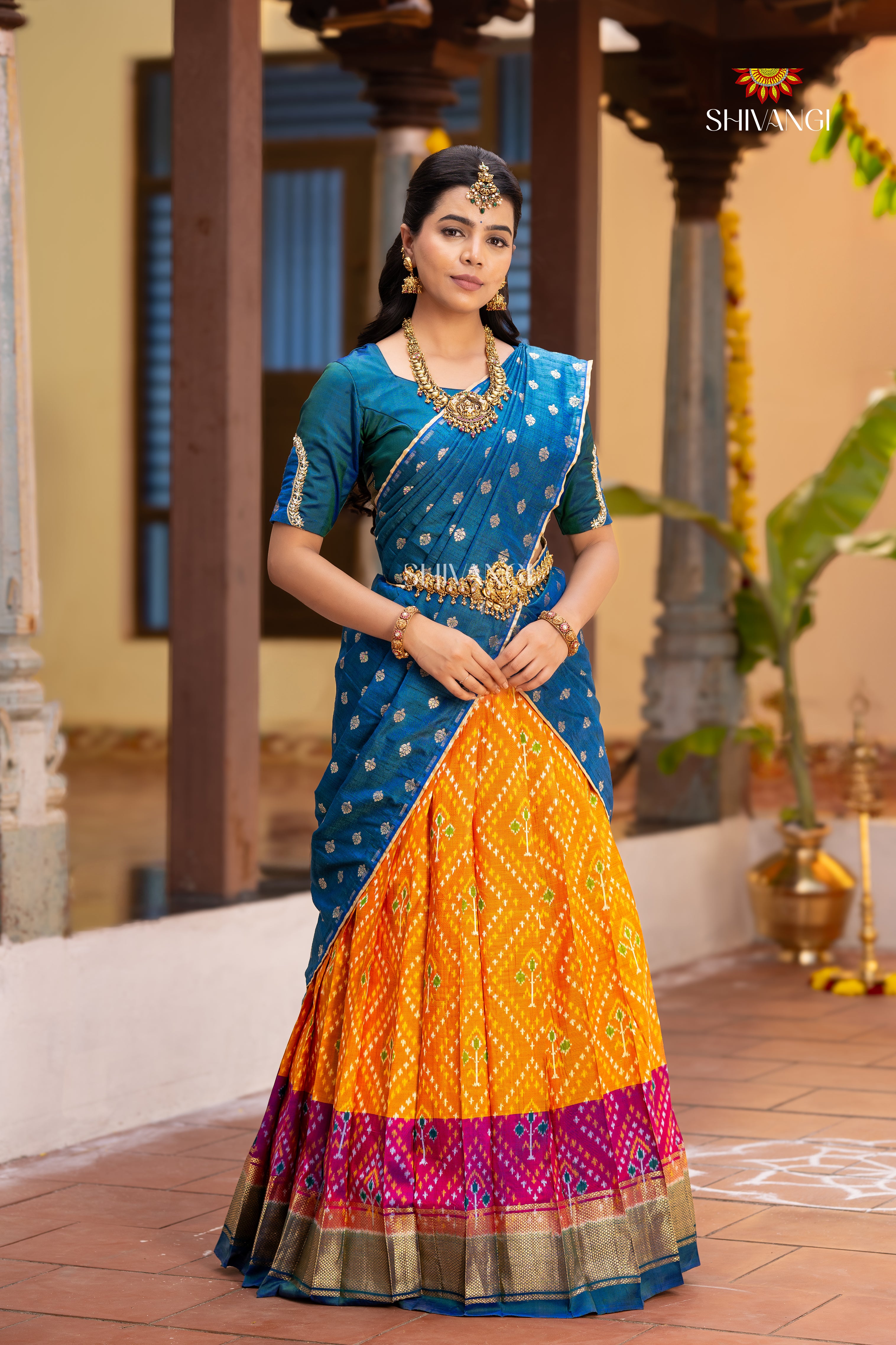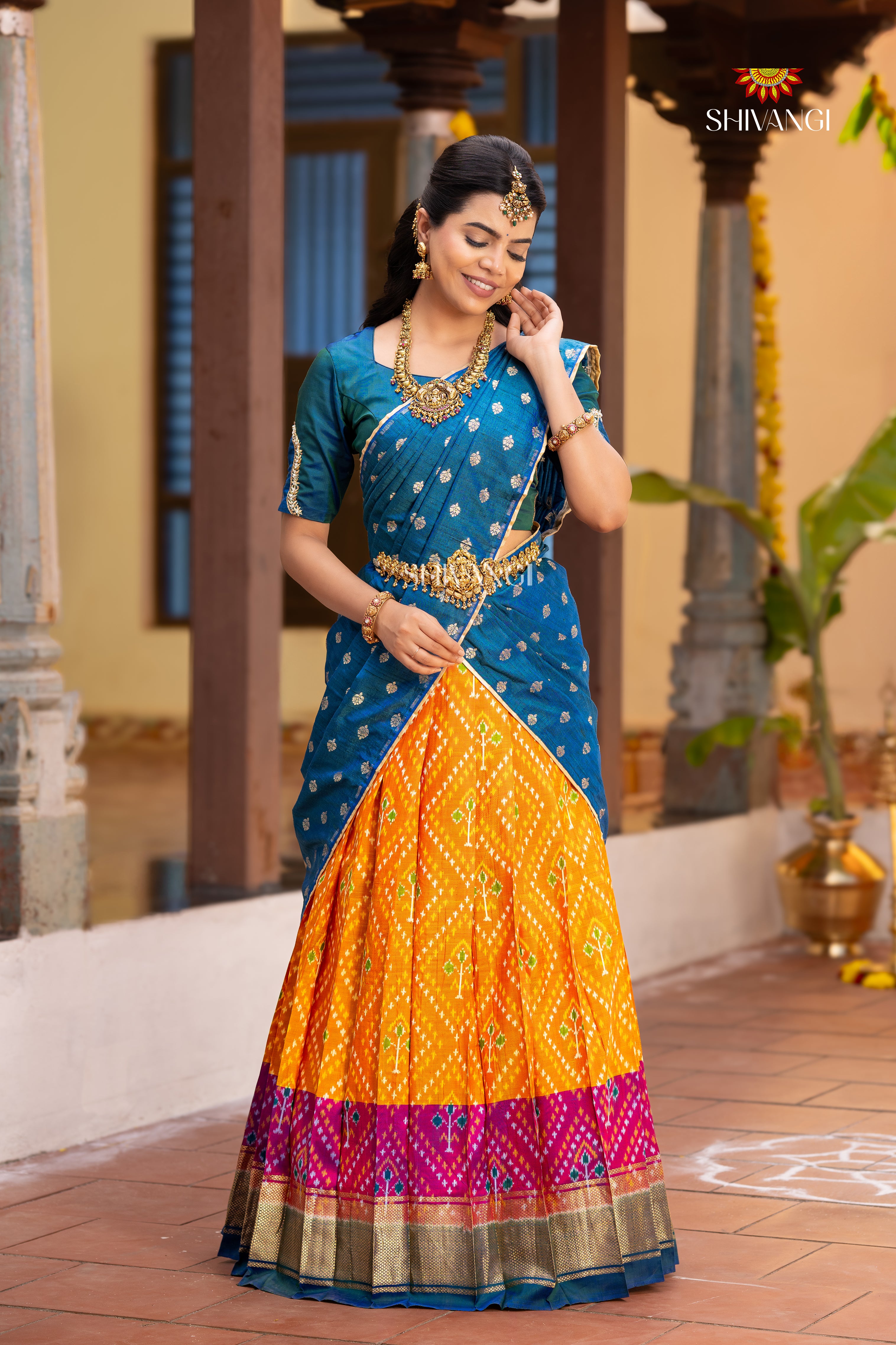 Mustard yellow Silk PochampallyPremium Half Saree | Lehenga For Girls