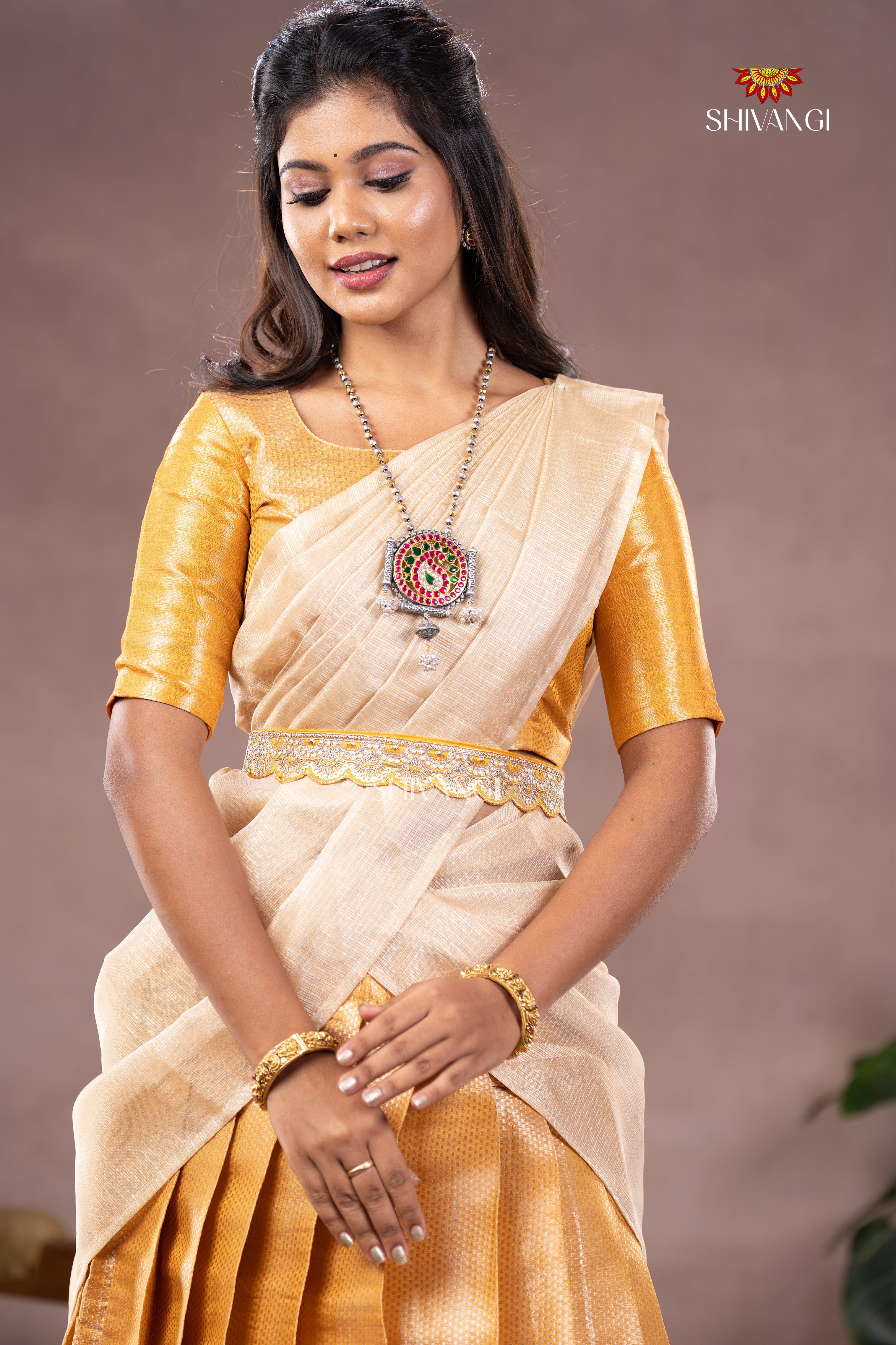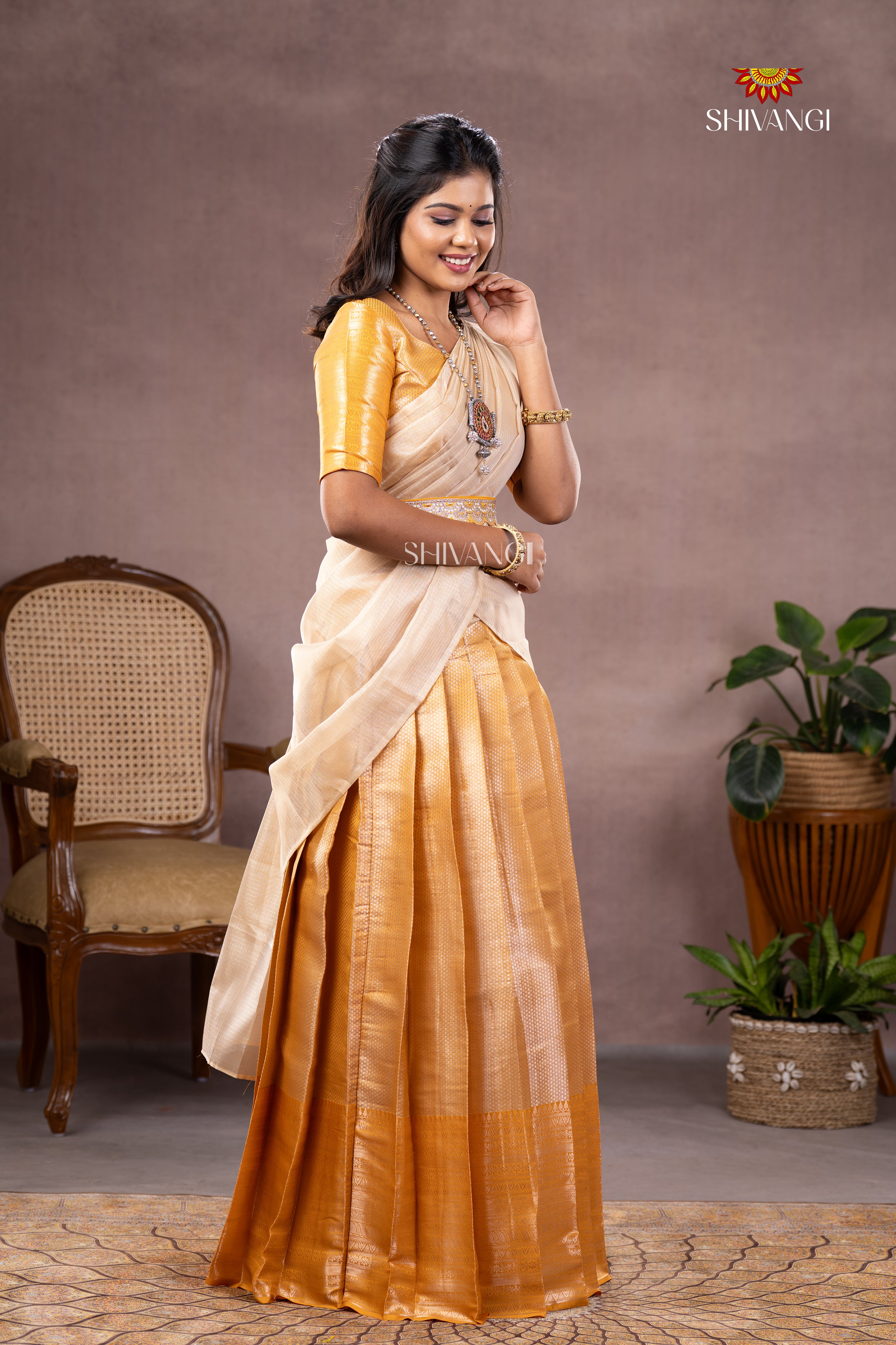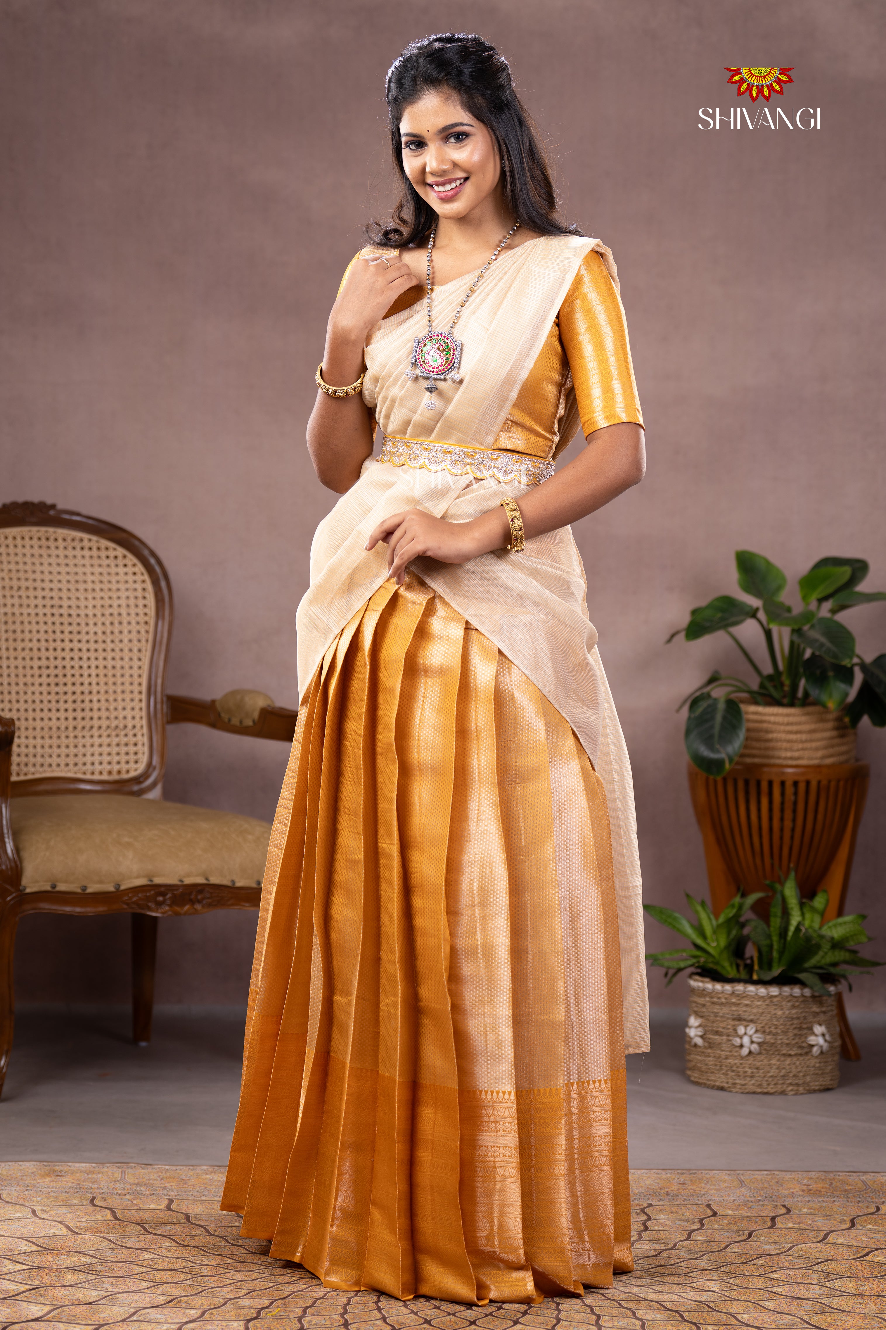 Mustardyellow Mini Checks Half Saree | Lehenga For Girls