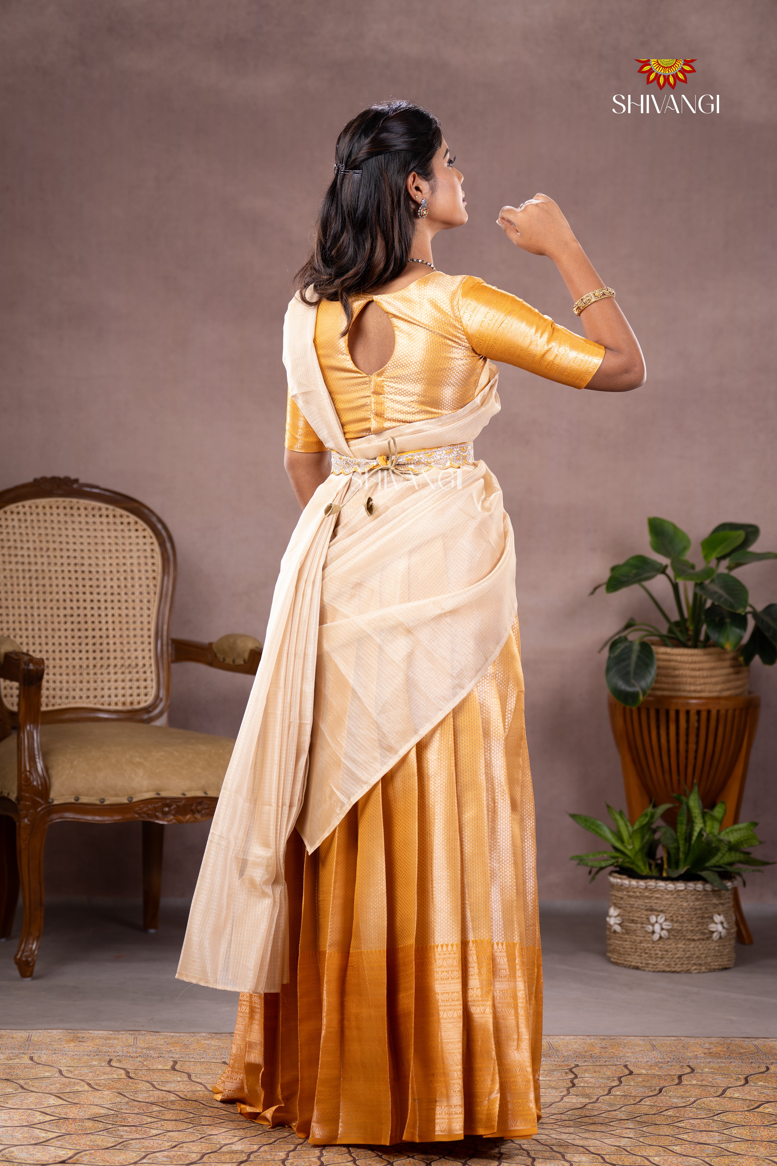 Mustard yellow Mini Checks Half Saree | Lehenga For Girls