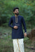 Navy Blue Silk Cotton Kurta For Boys features a regular collar, full sleeves, and waist-length design. Made from silk cotton, it's perfect for festive occasions.
