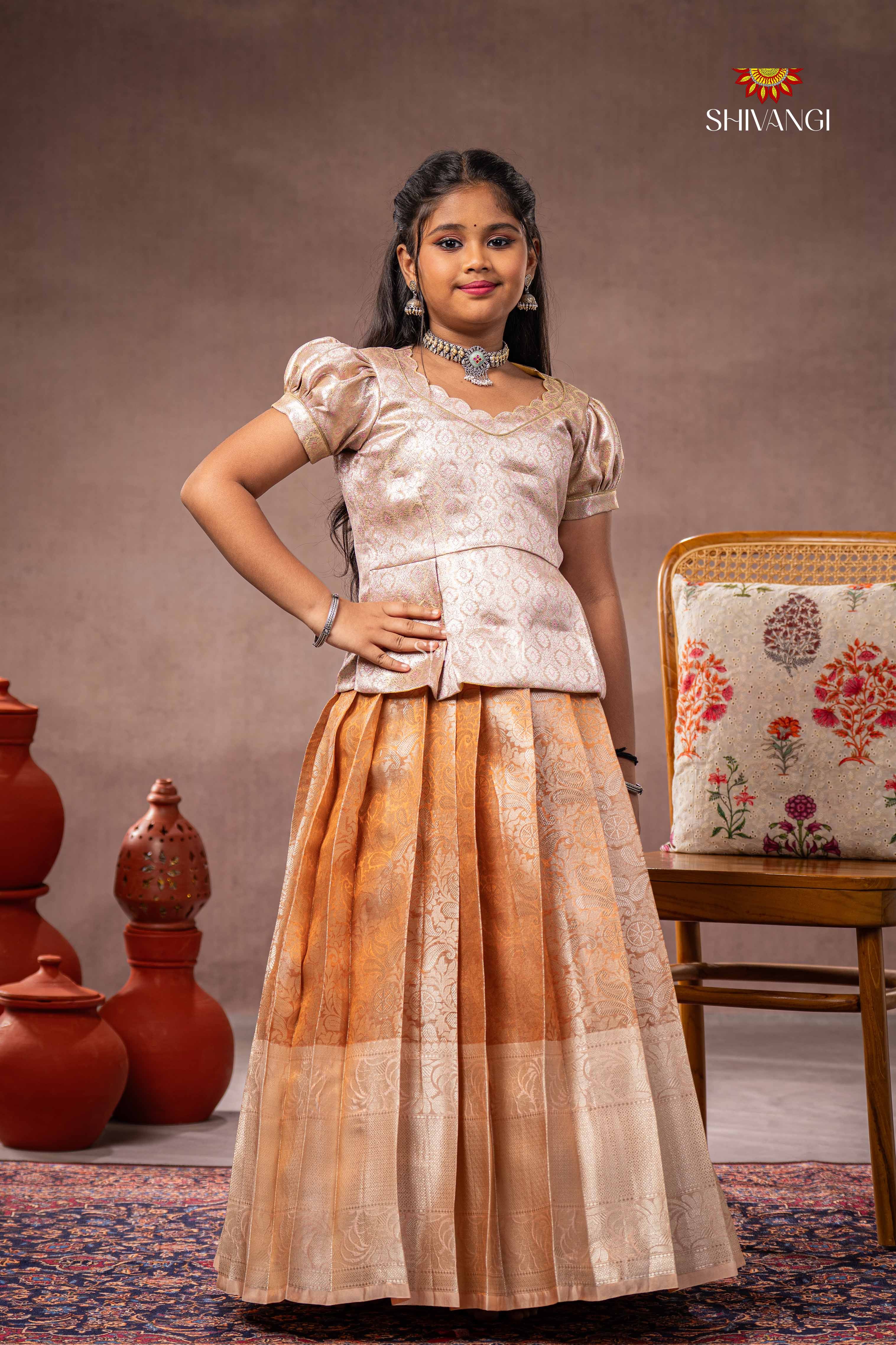 Peach Misty Lilac Traditional Pattu Pavadai Set
