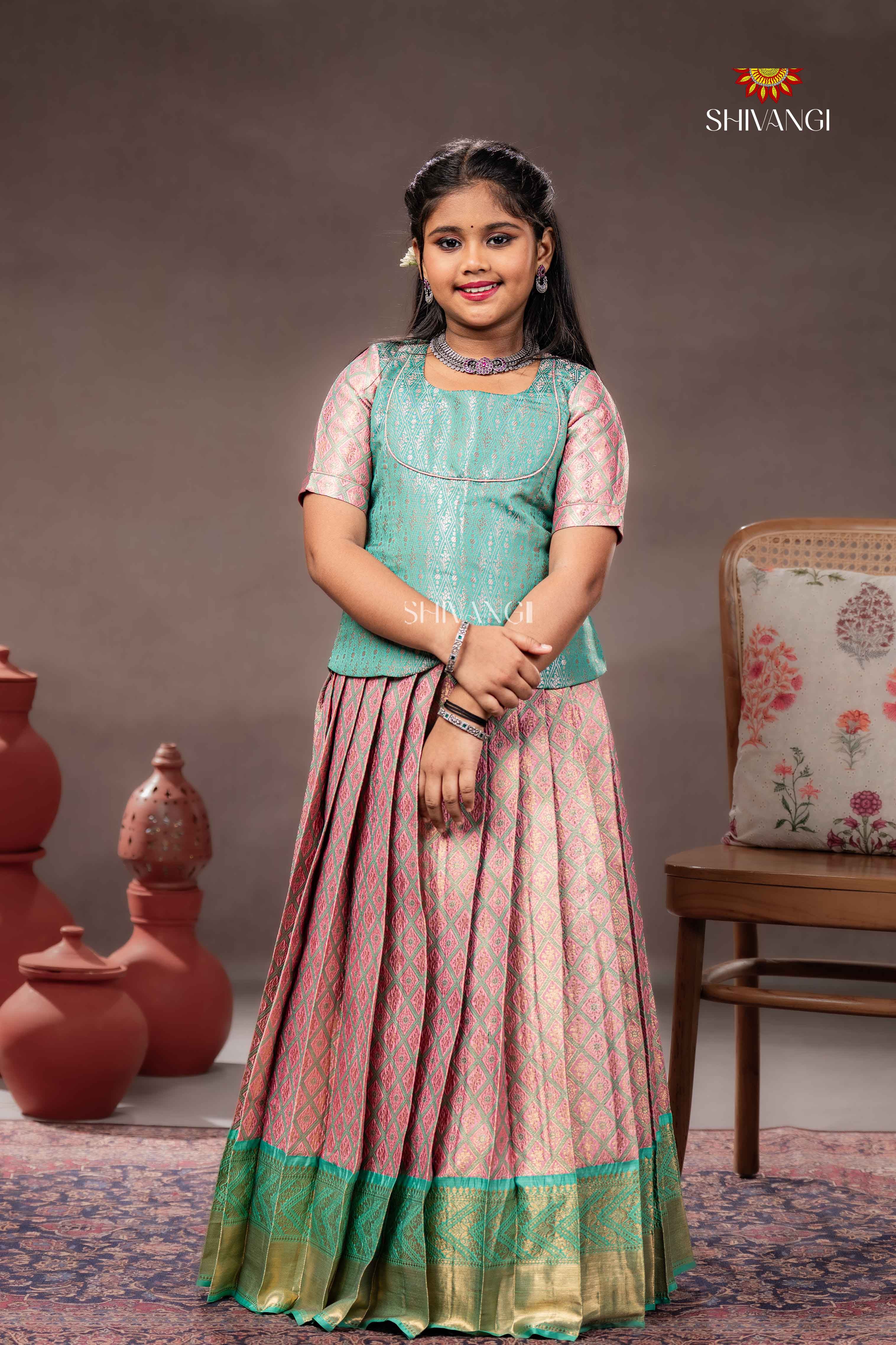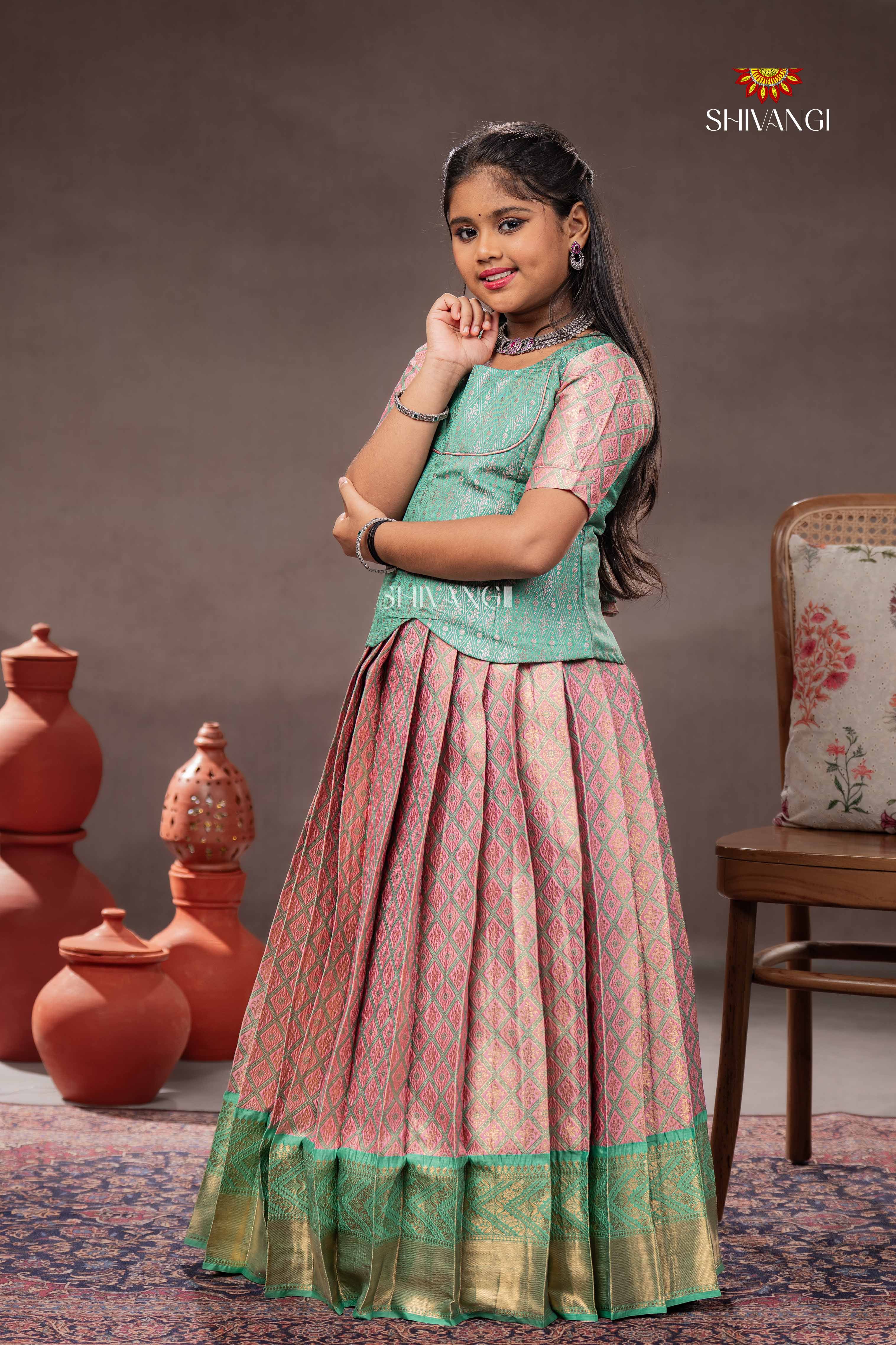 Pink Diamond Check Traditional Pattu Pavadai Set