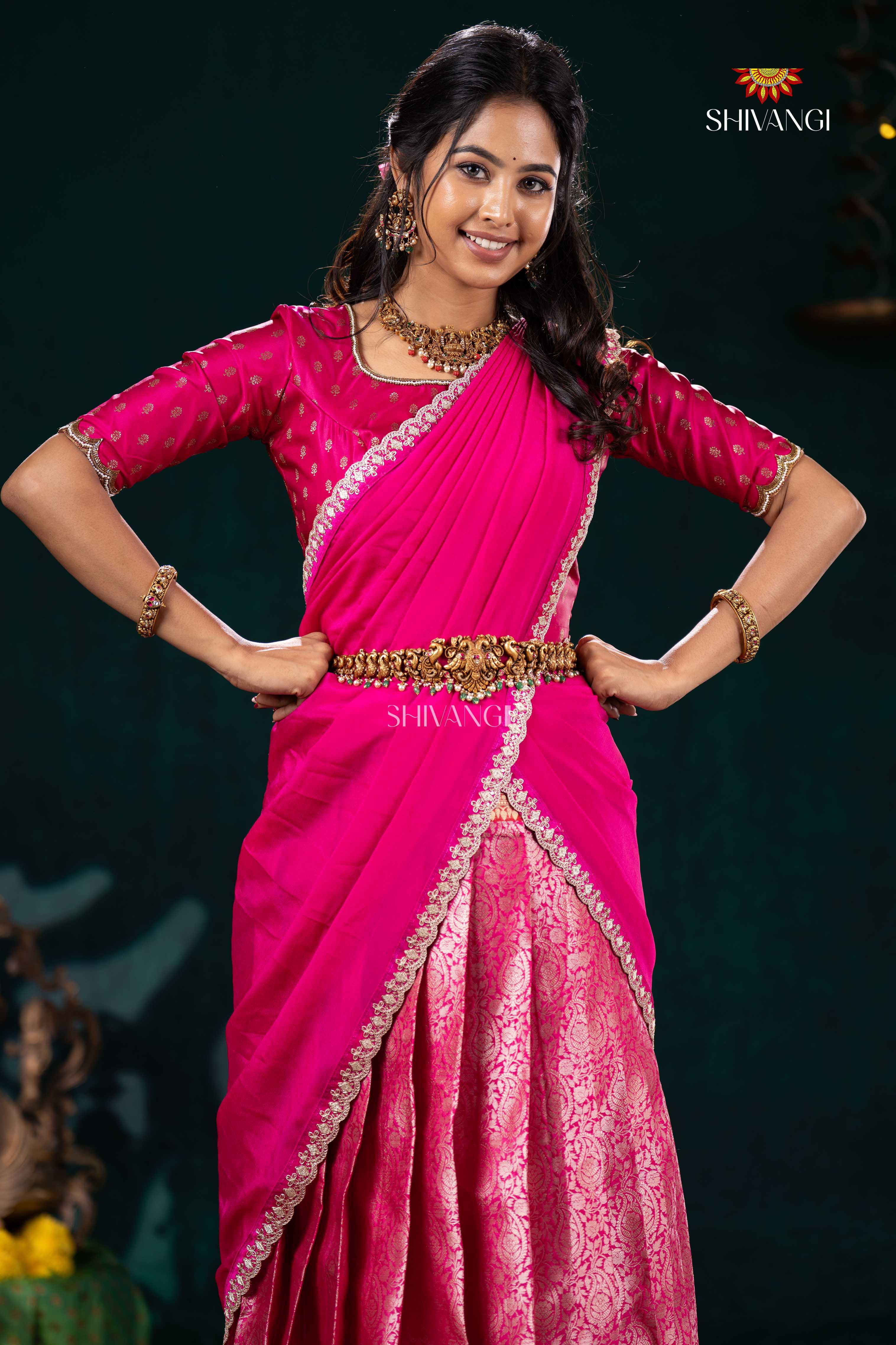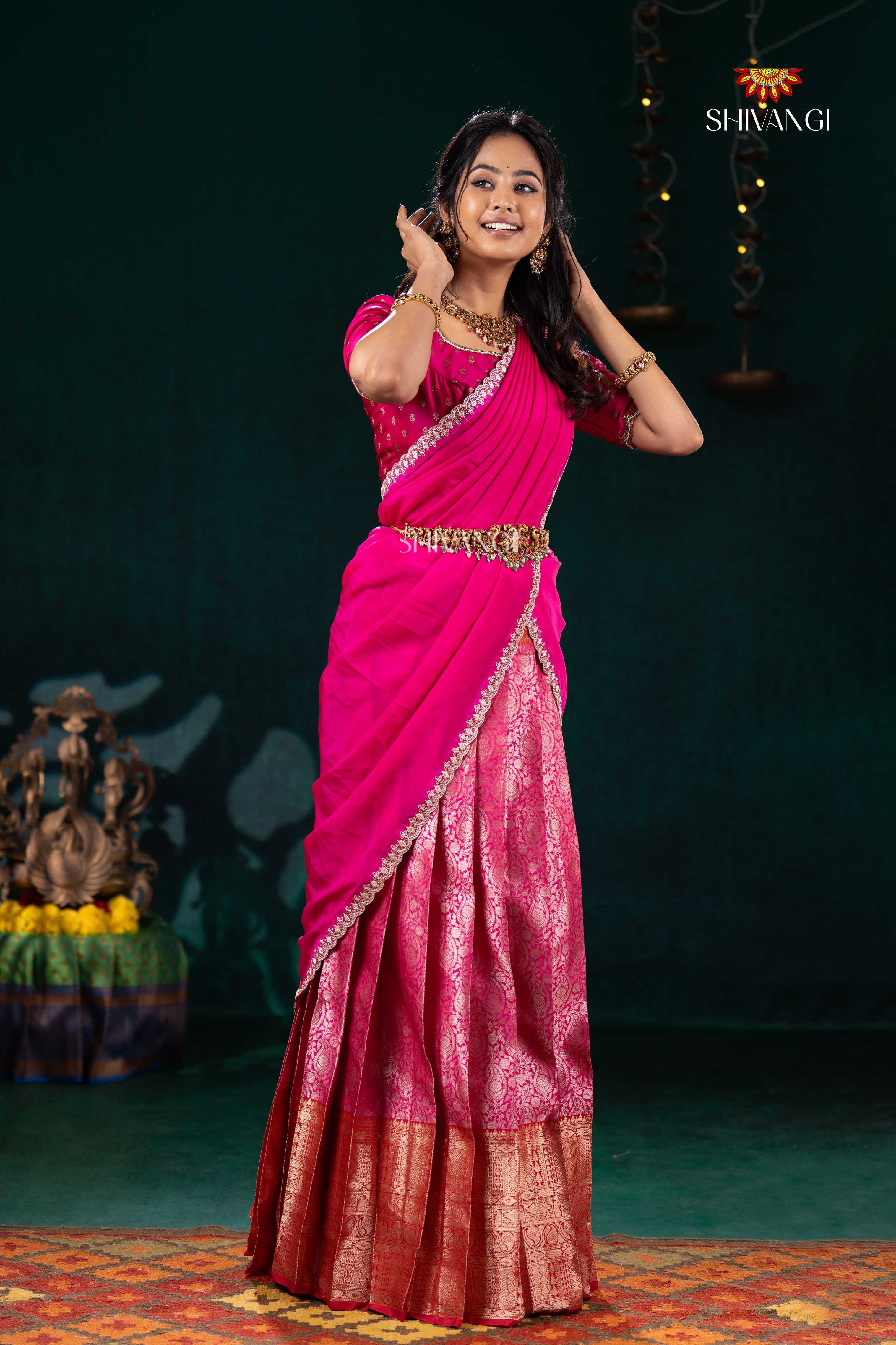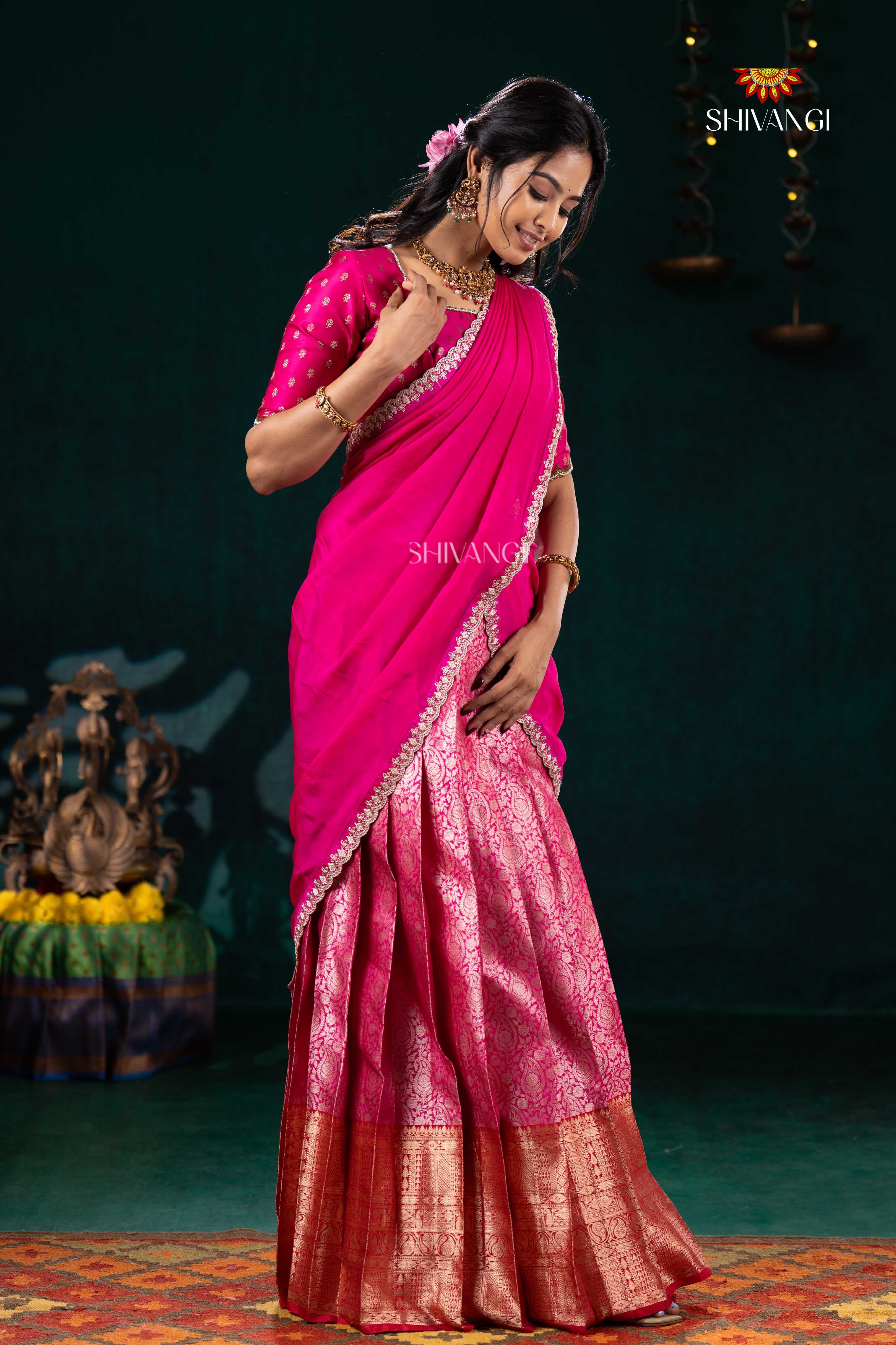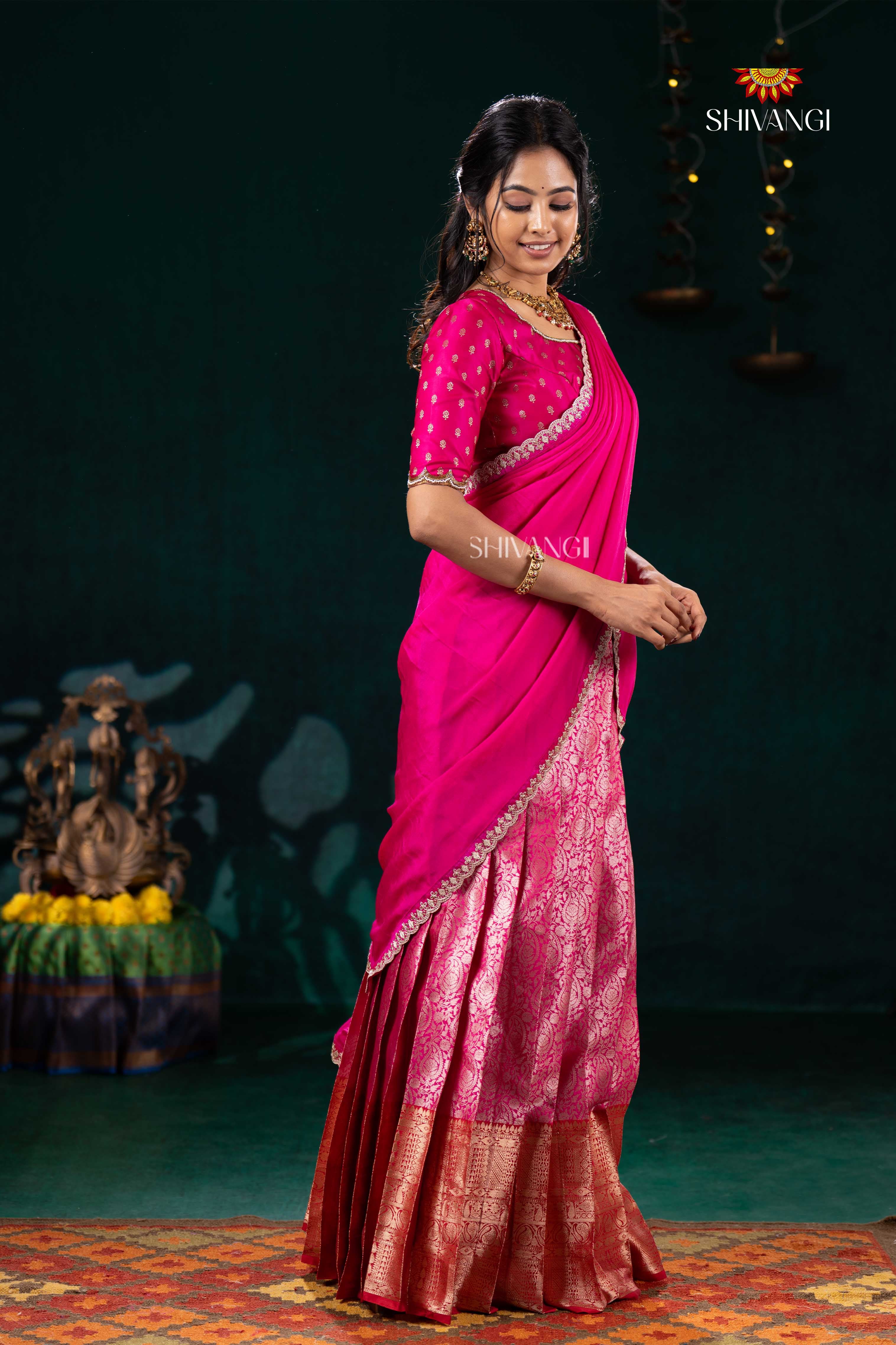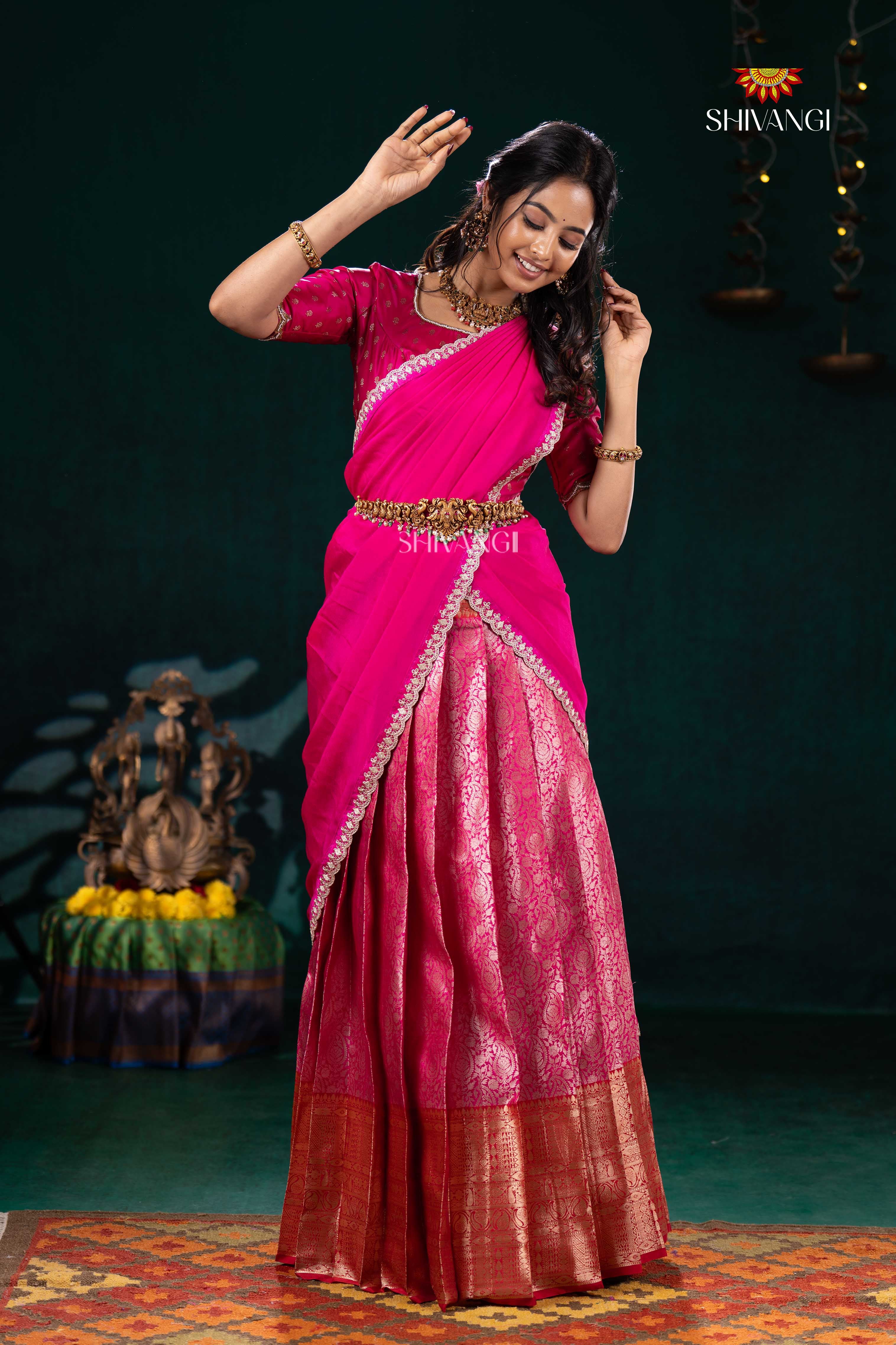 Pink Divine Mango Half Saree | Lehenga For Girls