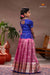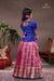 Pink Ilam Thendral Traditional Pattu Pavadai Set features a blue top with a round neck and elbow sleeves.