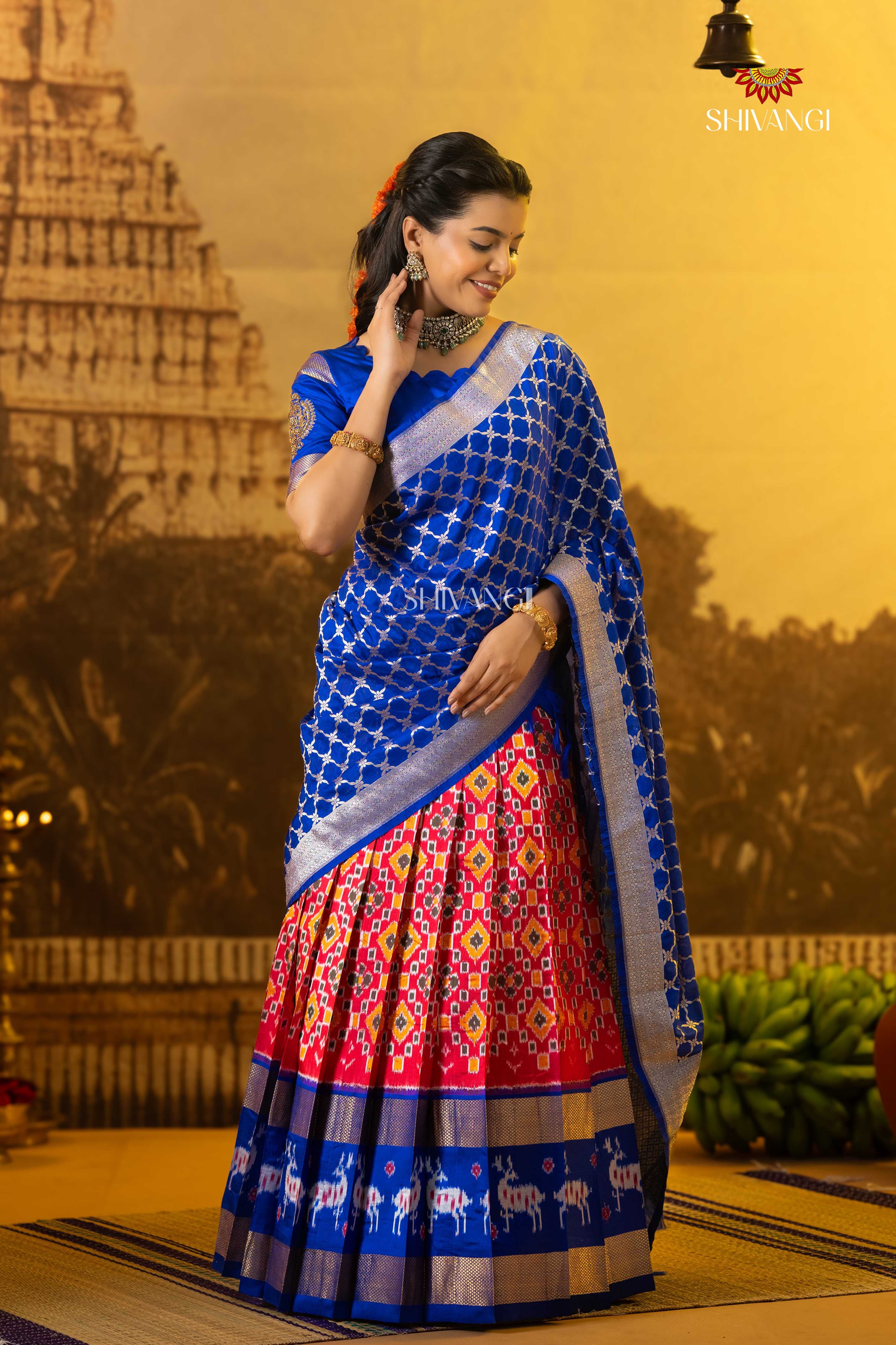 Silk Ikkat Premium Half Saree | Lehenga For Girls