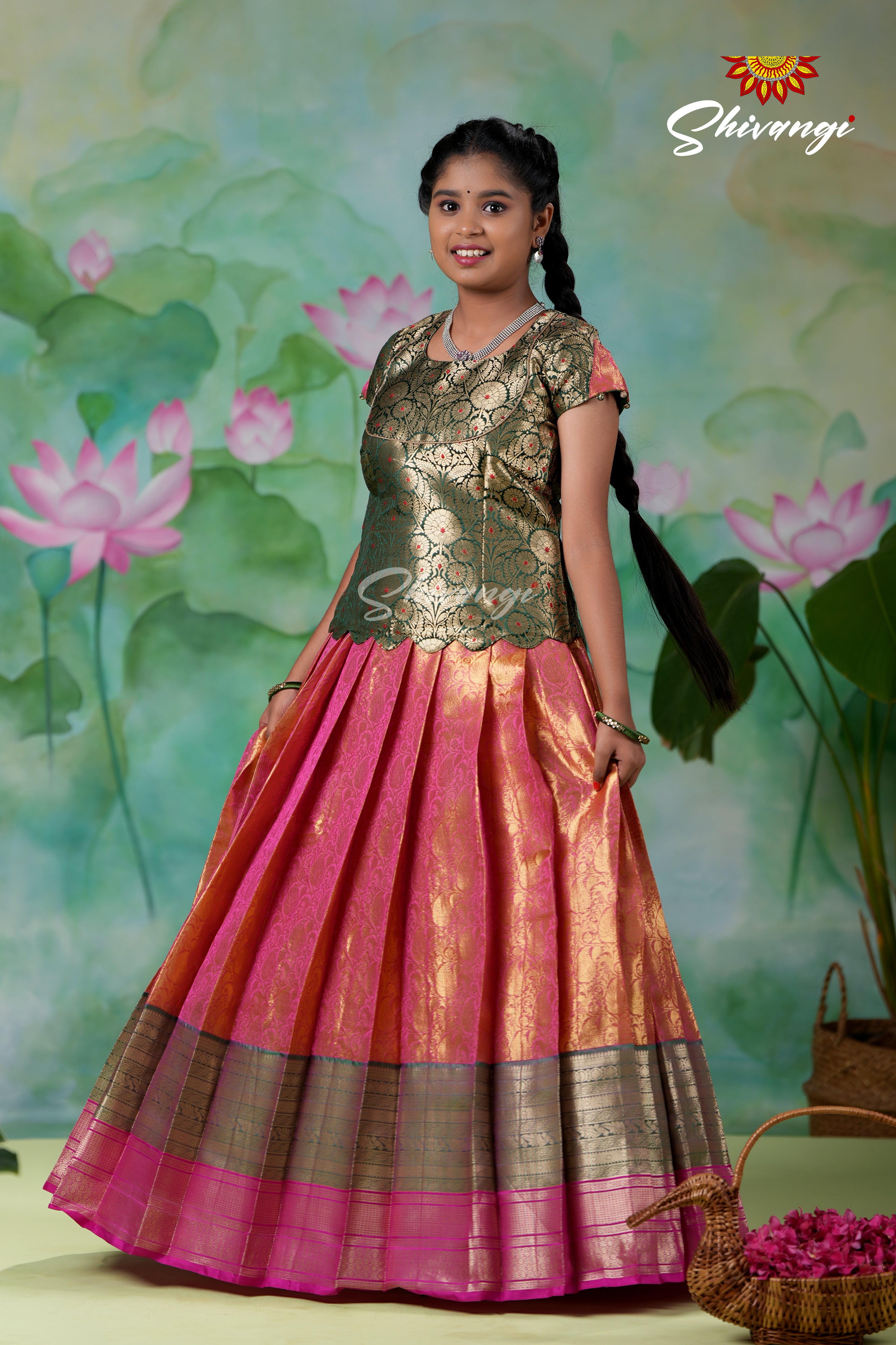 Pink Potly Mango Kids Pattu Pavadai | Langa Designs !!!
