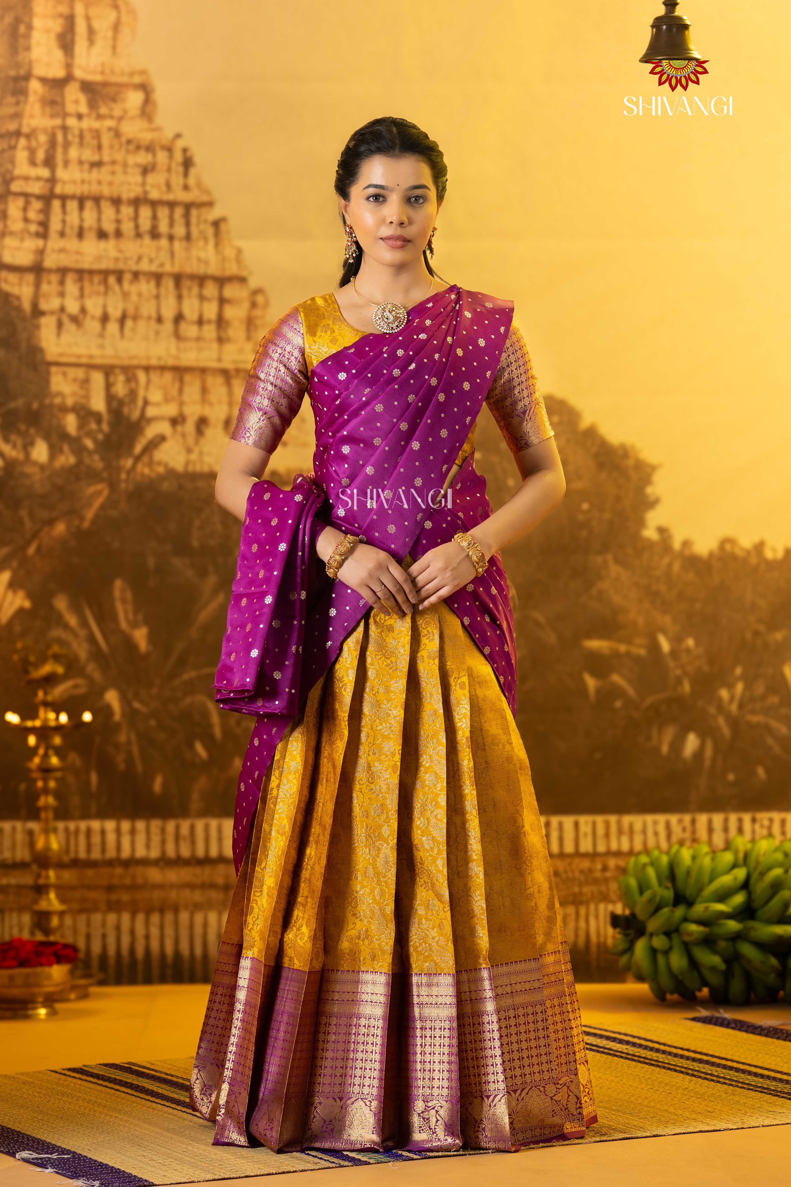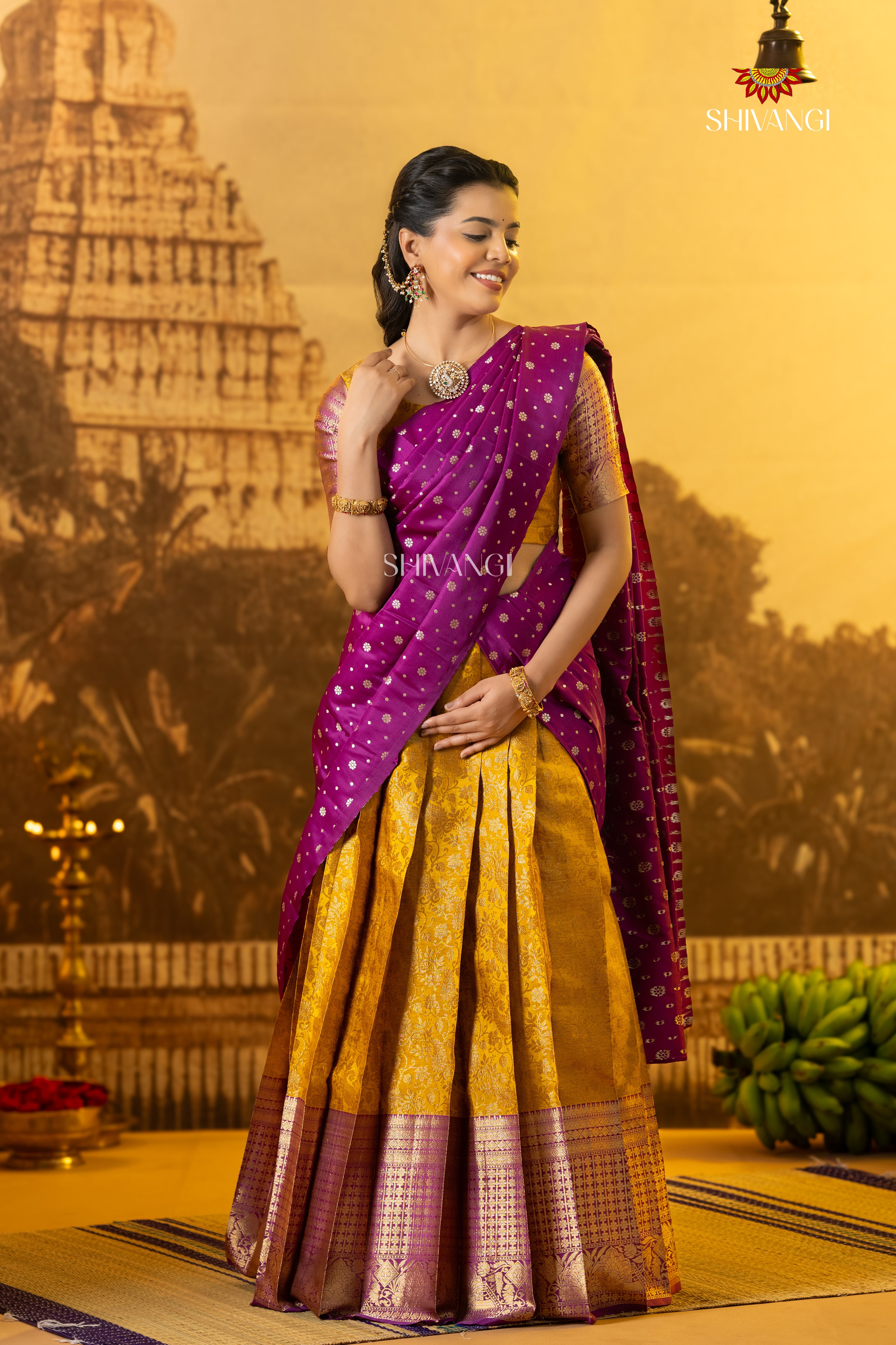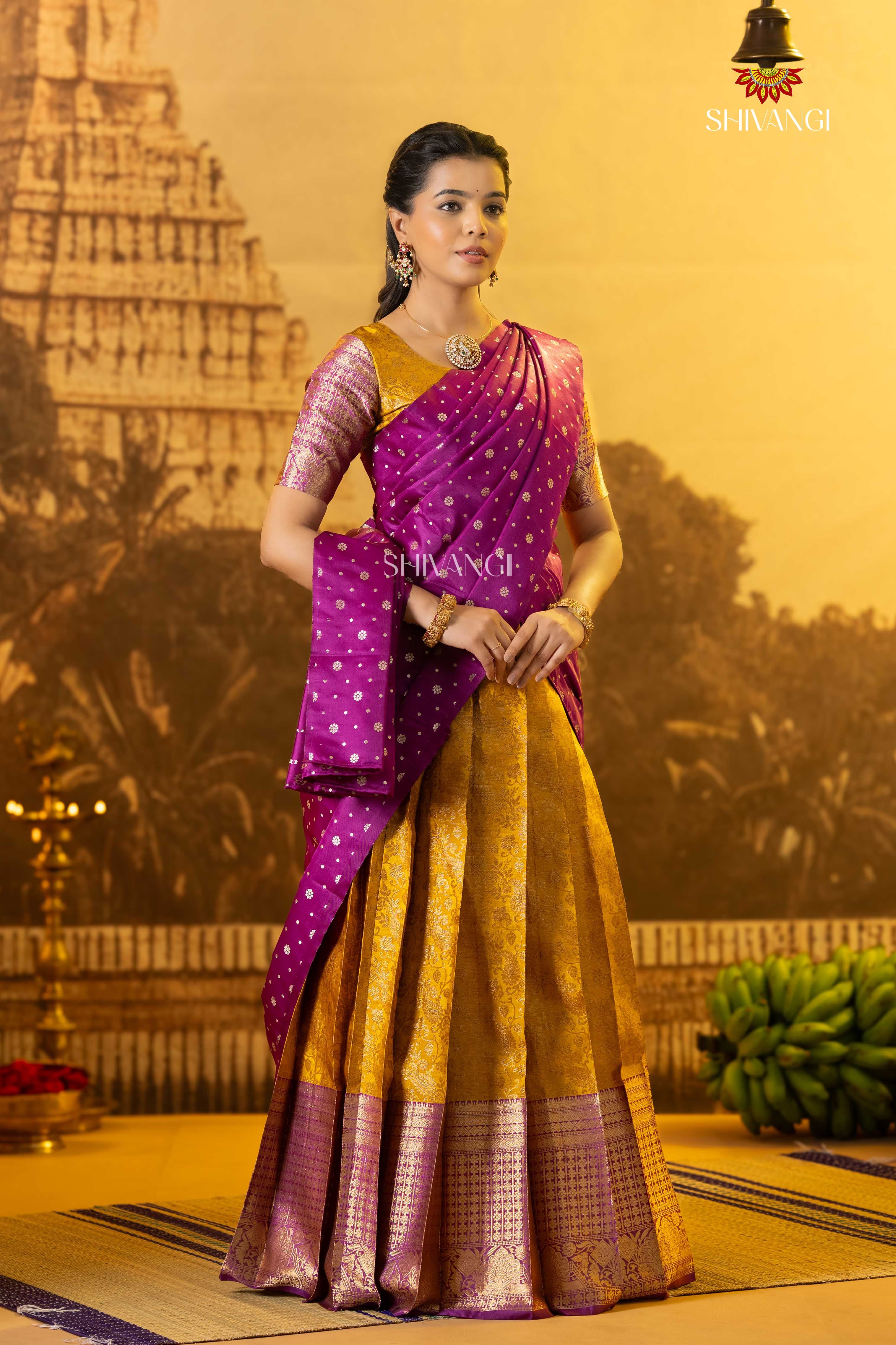 Yellow Antique Mango Half Saree | Lehenga For Girls