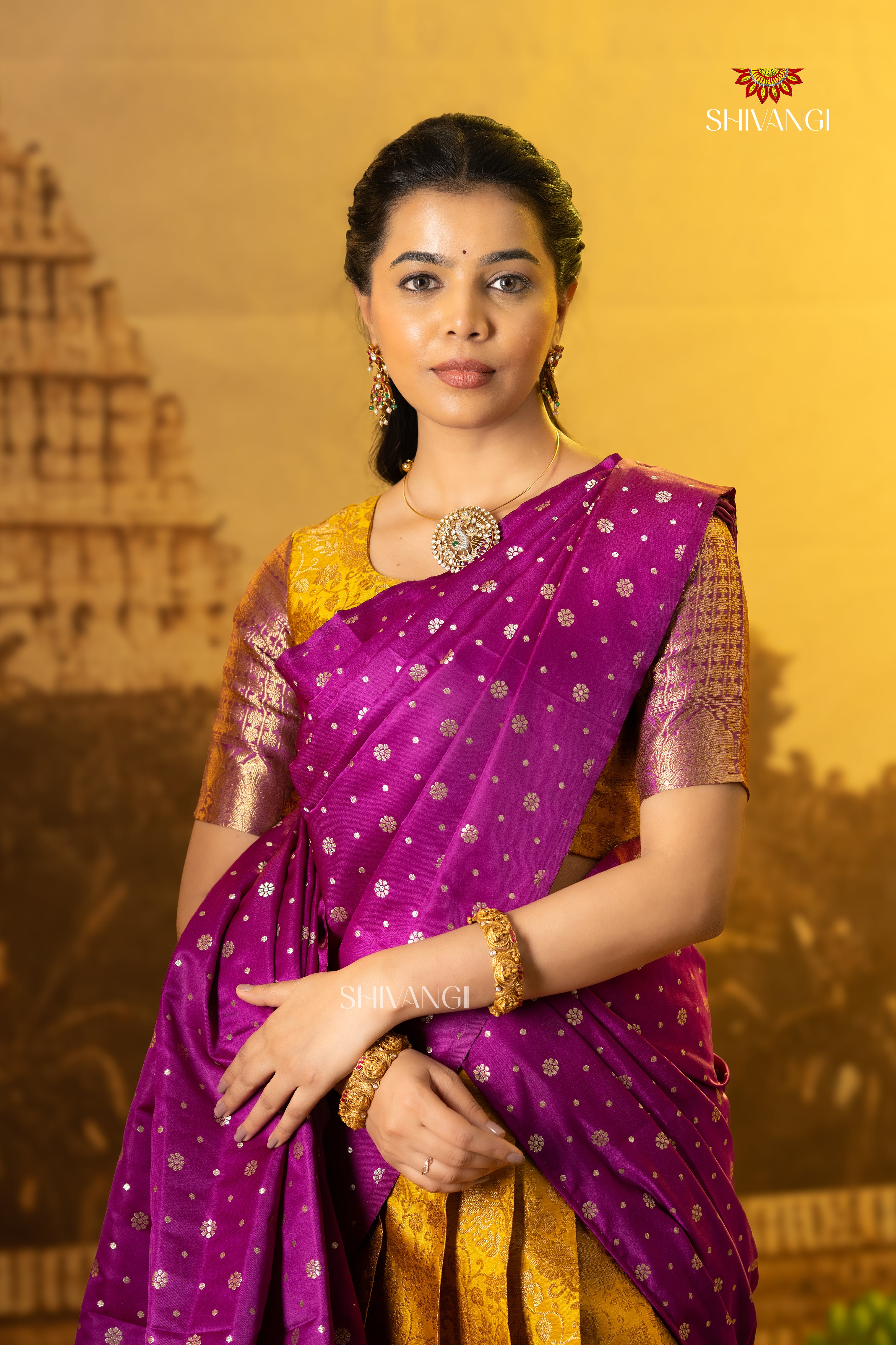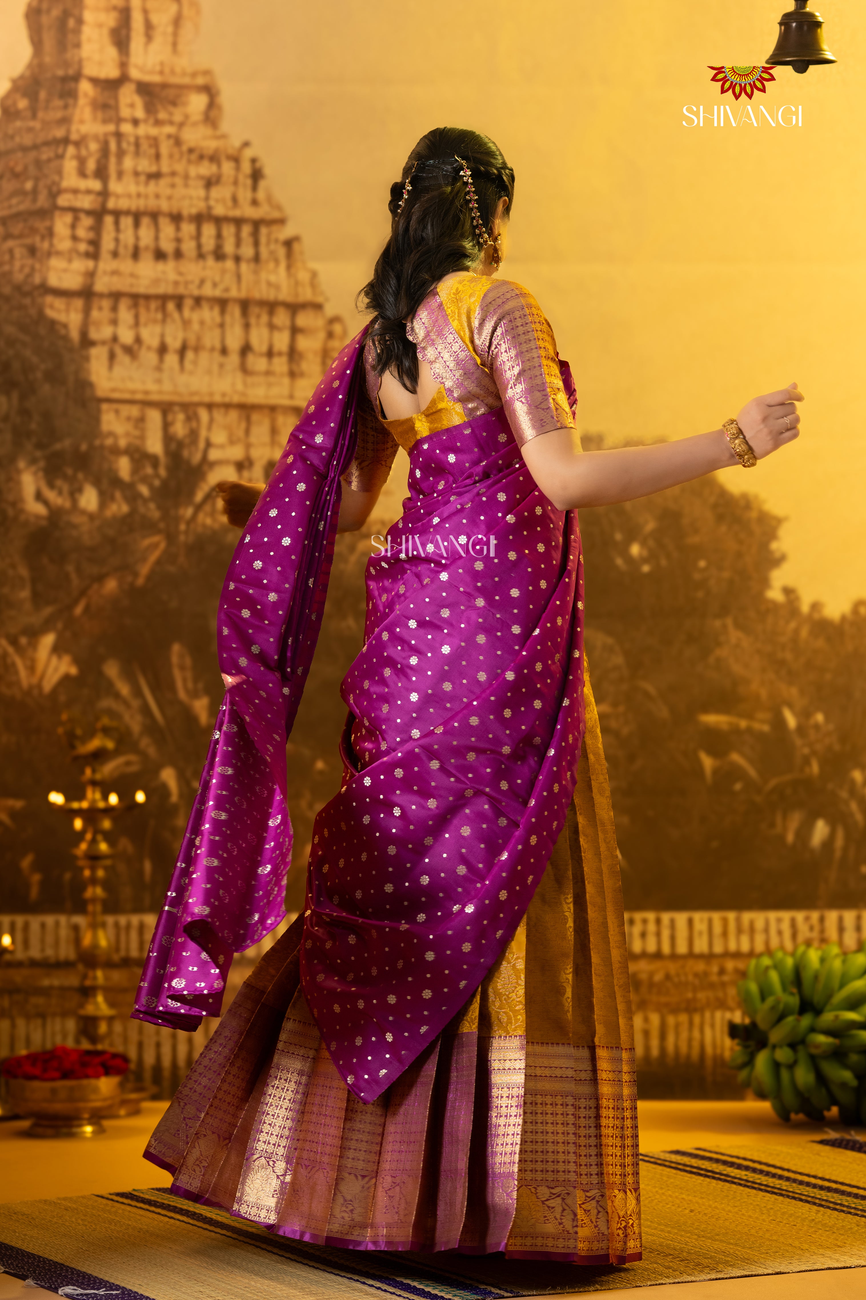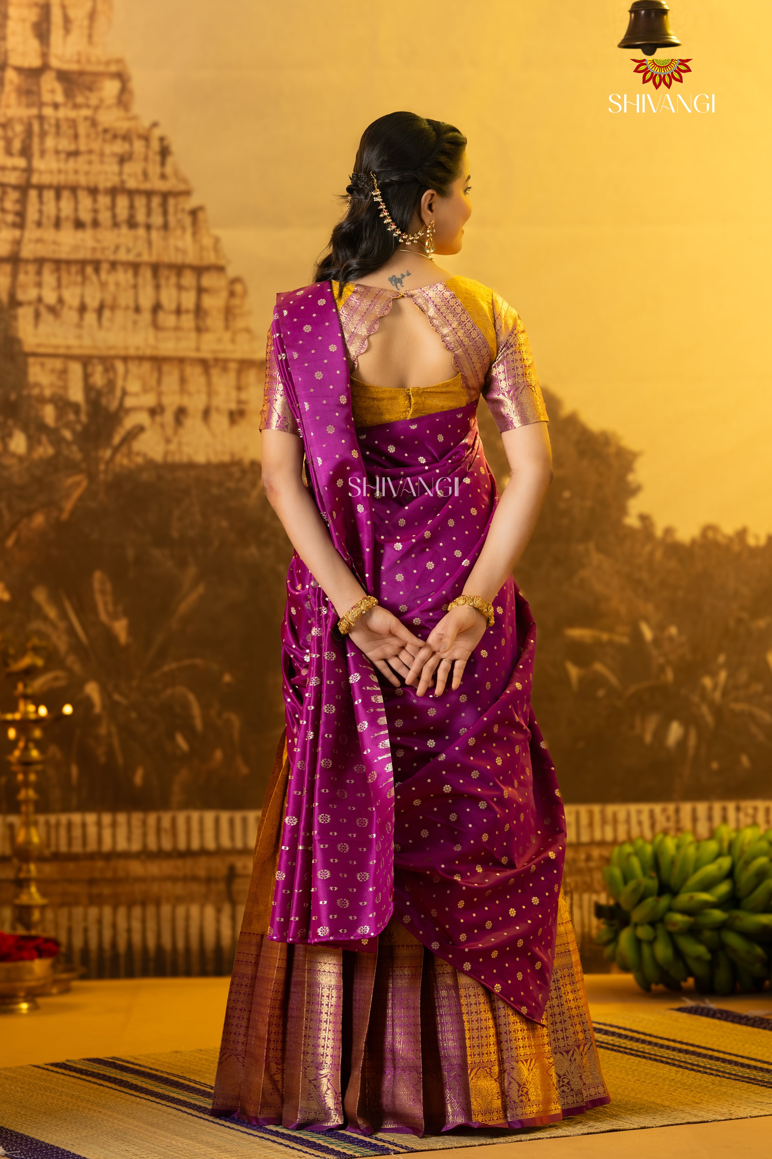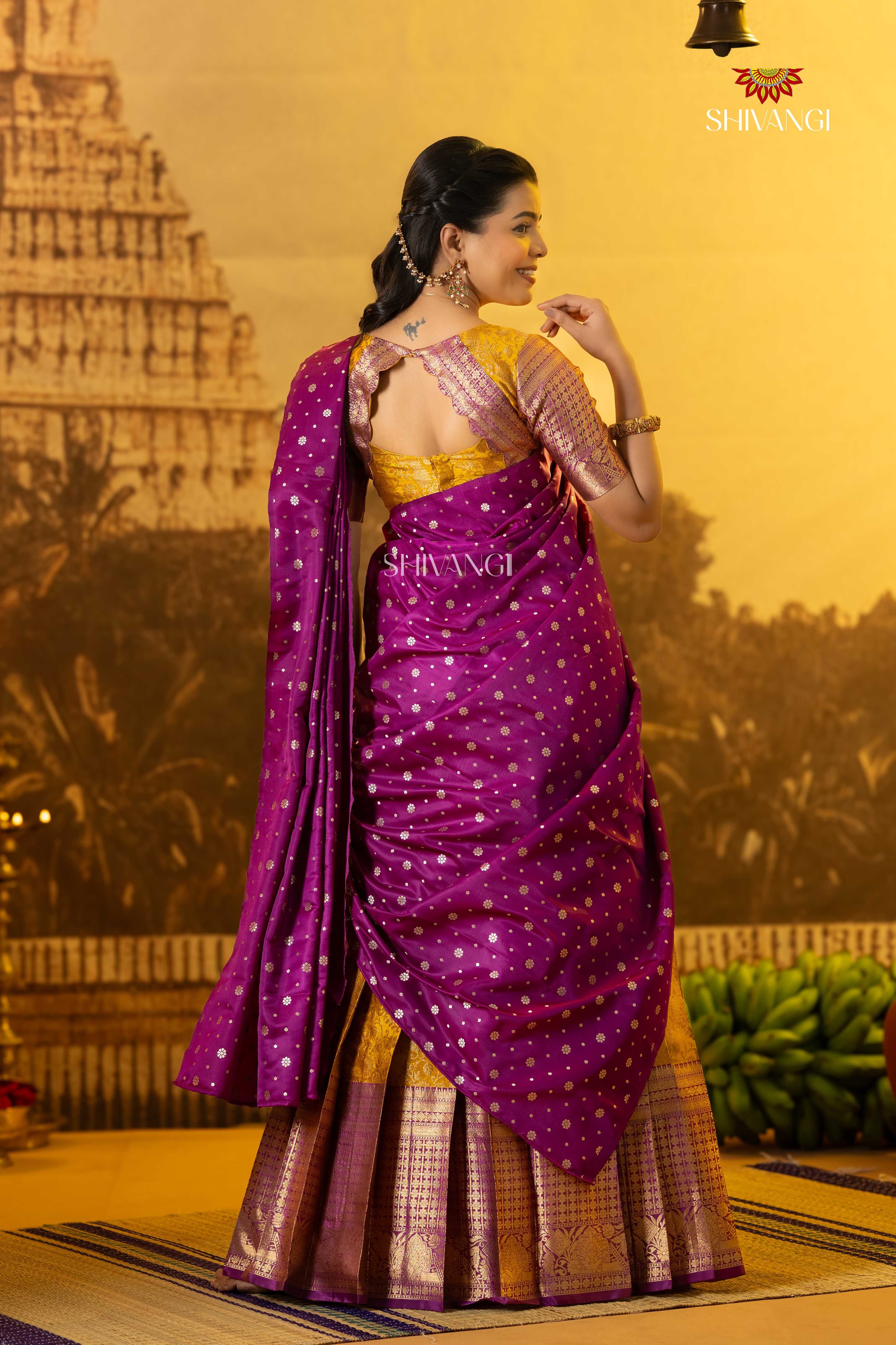Yellow Antique Mango Half Saree | Lehenga For Girls